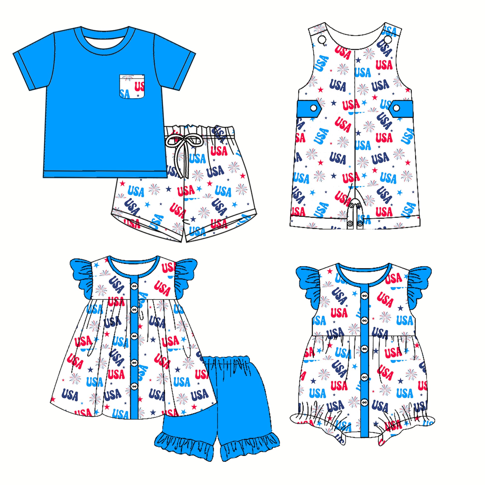 3.31(Custom Design Preorder MOQ 5 Each Design) USA Stars Print Kids 4th of July Matching Clothes Sibling Wear