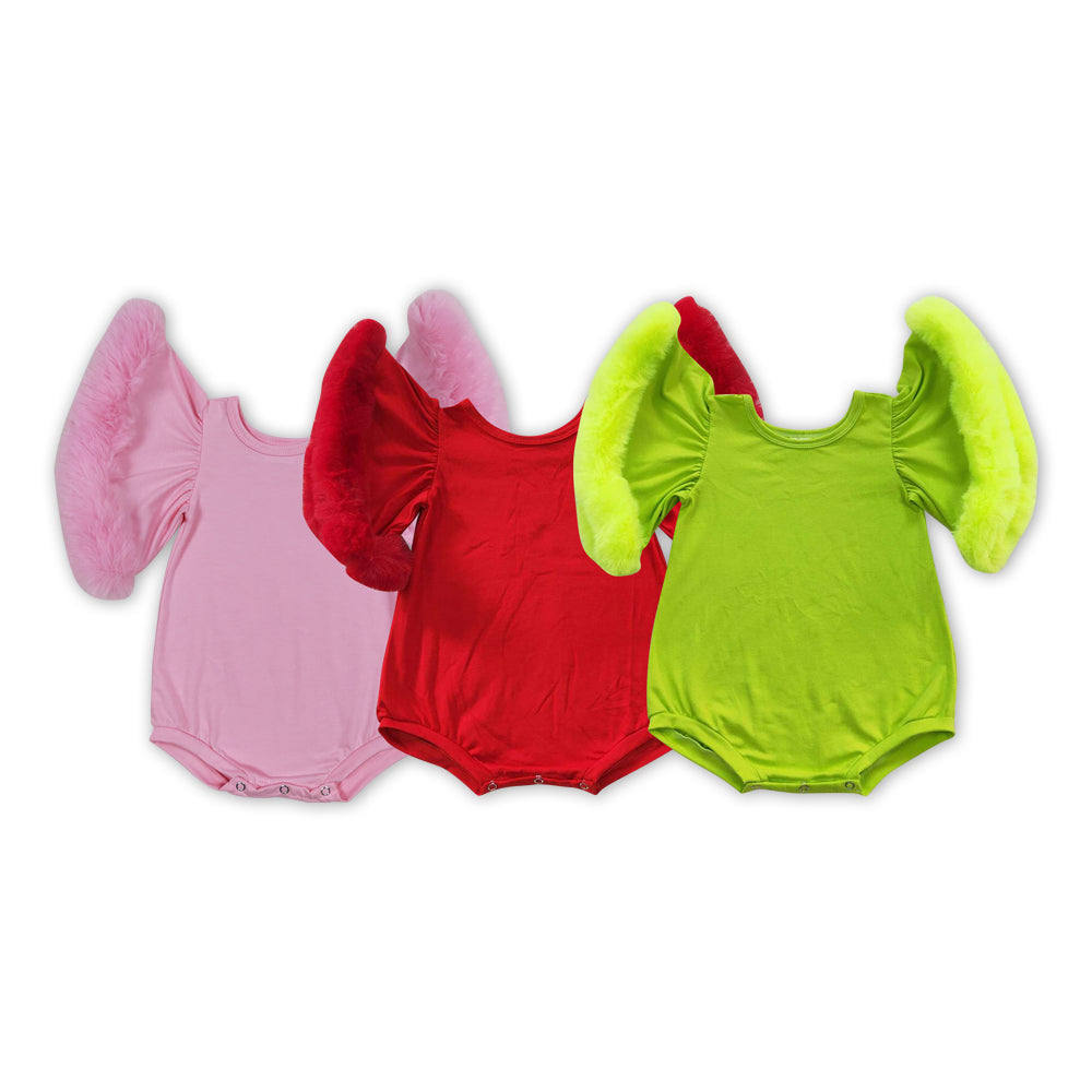 3 Colors Baby Girls Faux Fur Sleeve Matching Romper Sisters Wear
