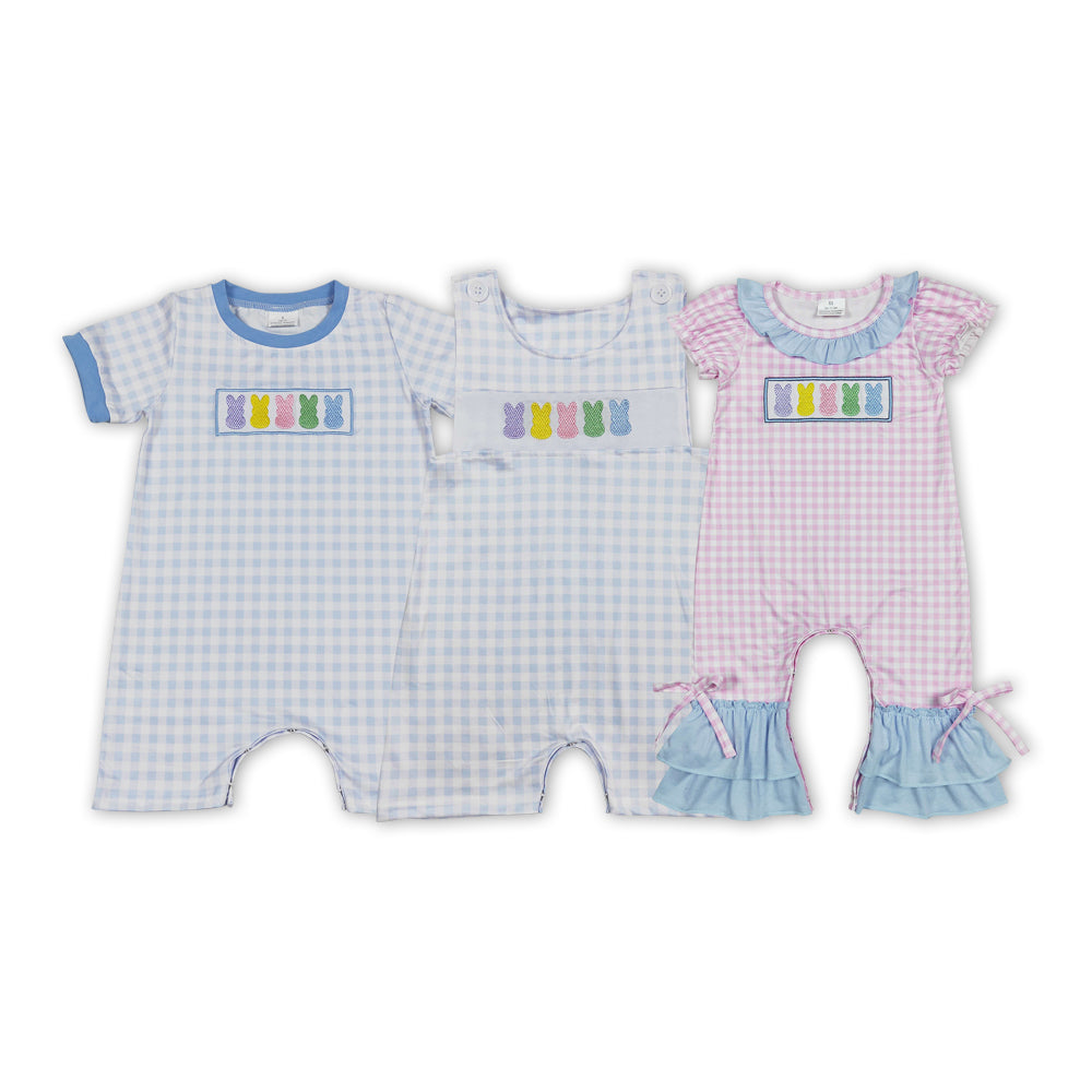 3 Colors Bunny Embroidery Baby Easter Matching Romper Sibling Wear
