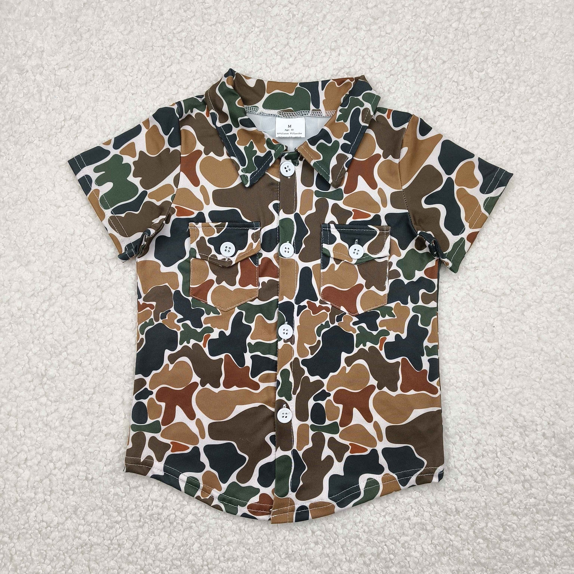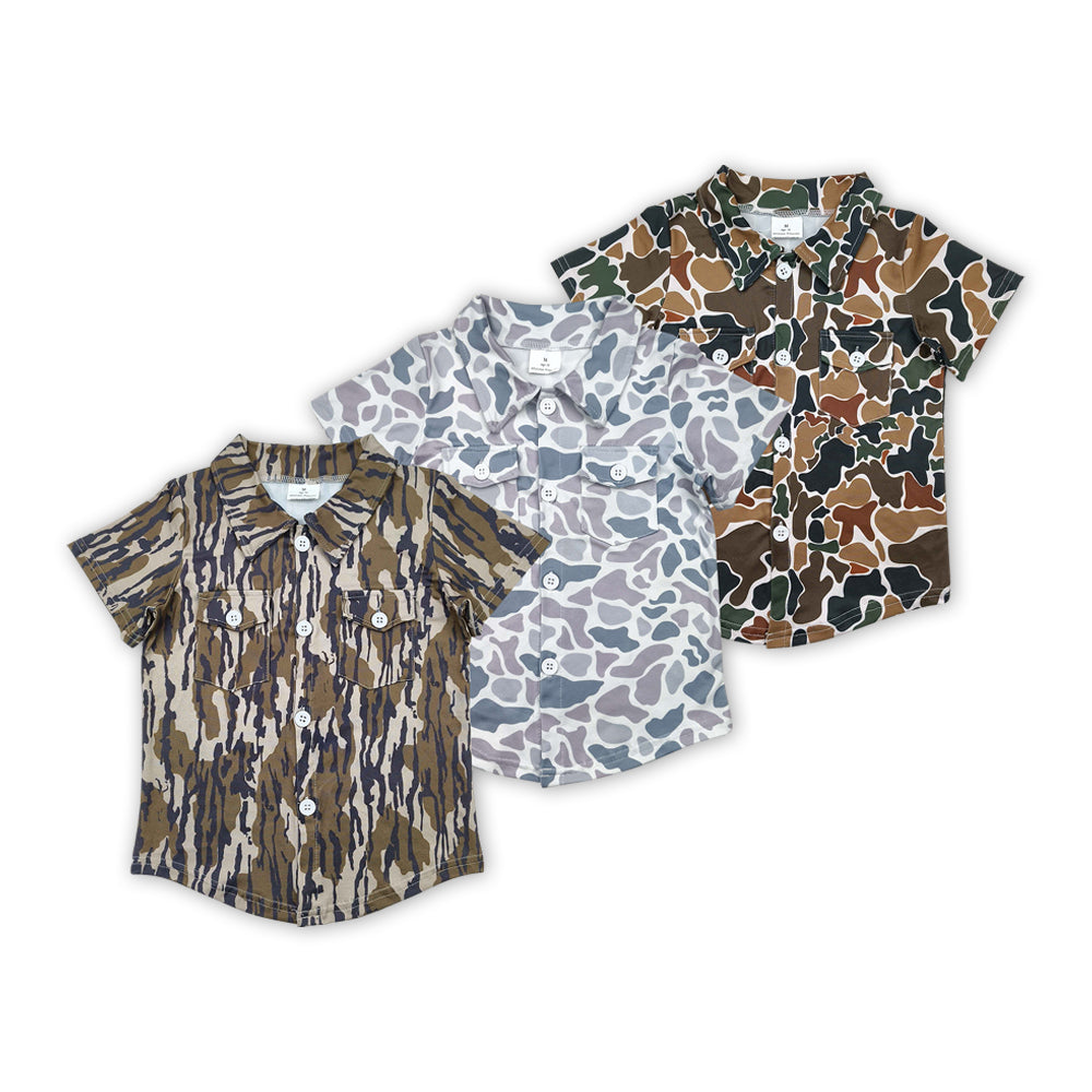 3 Colors Camo Print Pockets Boys Summer Tee Shirts Top Brothers Wear
