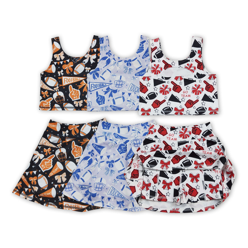 3 Colors Cheer Bows Tank Top Shorts Skirts Girls Summer Yoga Outfits Sisters Wear