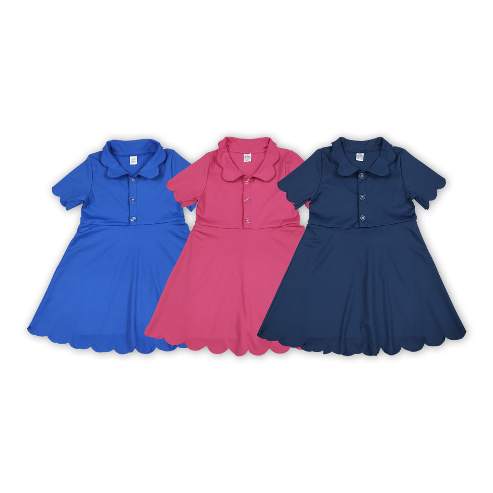 3 Colors Girls Summer Knee Length Yoga Buttons Dress Sisters Wear