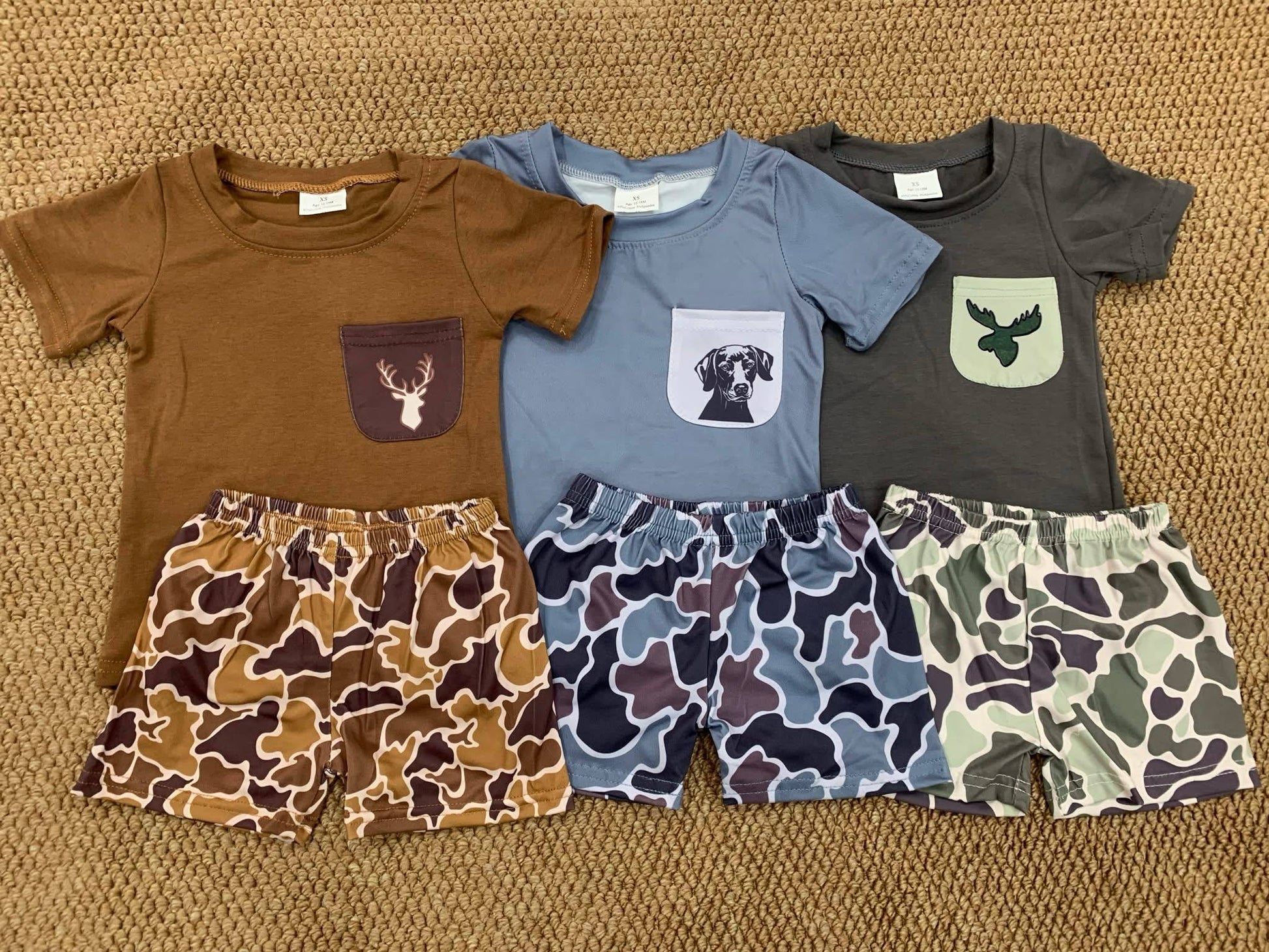 3 Colors Pocket Top Camo Shorts Boys Summer Clothes Set Brothers Wear