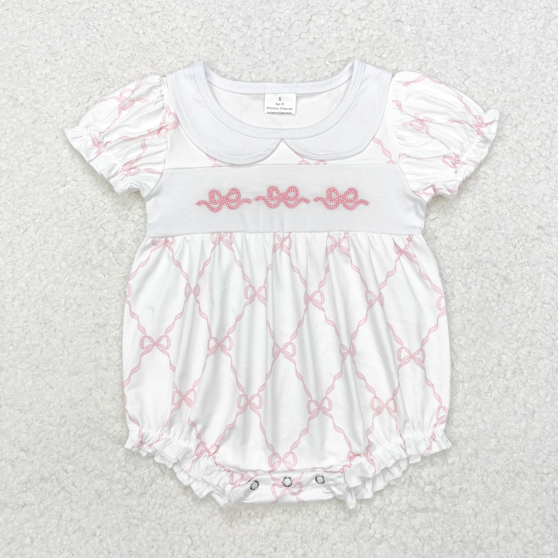 3 Colors Print Bows Embroidery Baby Girls Summer Matching Romper Sisters Wear