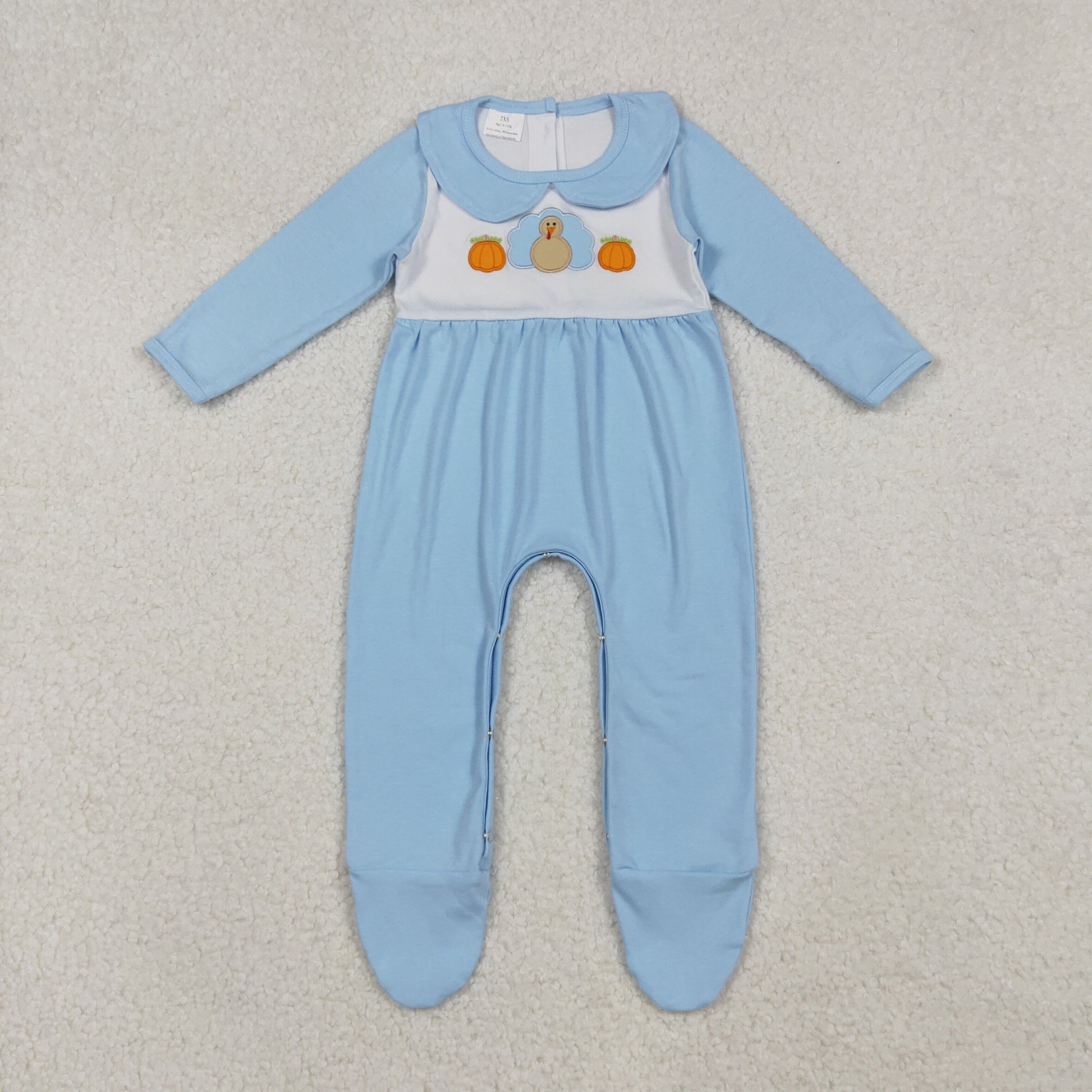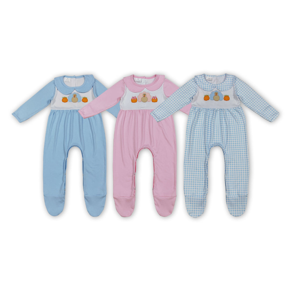 3 Colors Turkey Pumpkin Embroidery Baby Thanksgiving Footed Romper Sibling Wear