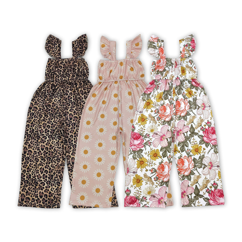 3 Print Flowers Leopard Print Girls Summer Jumpsuits Sisters Wear