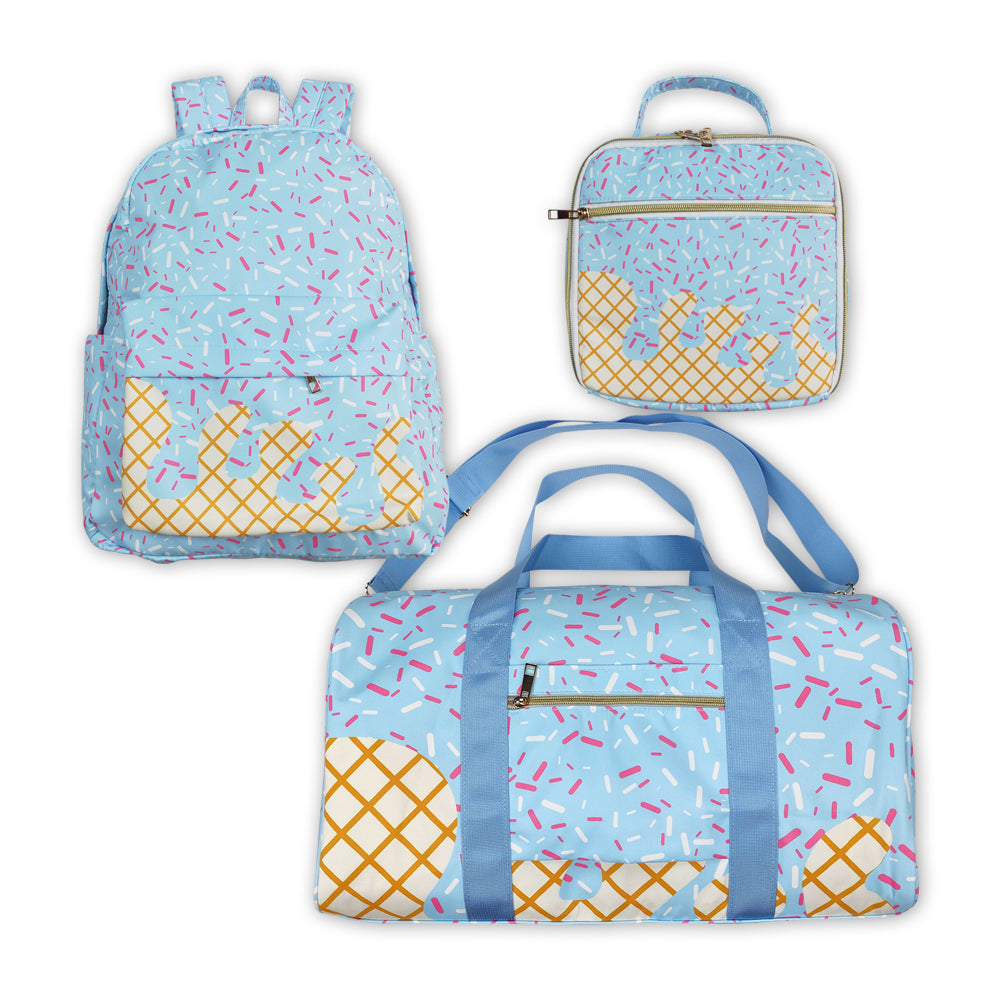 3 Styles Blue Sprinkles Print Kids Go to School Bags Backpack Lunch Boxes Overnight Bags