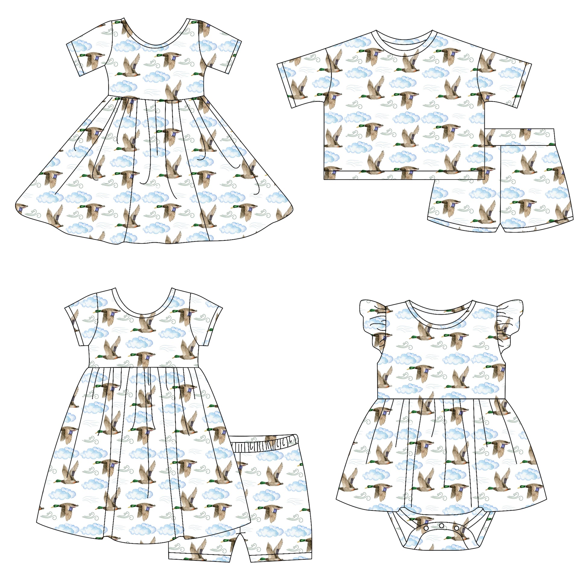 4.14(Custom Design Preorder MOQ 5 Each Design) Duck Print Girls Summer Matching Clothes Sisters Wear