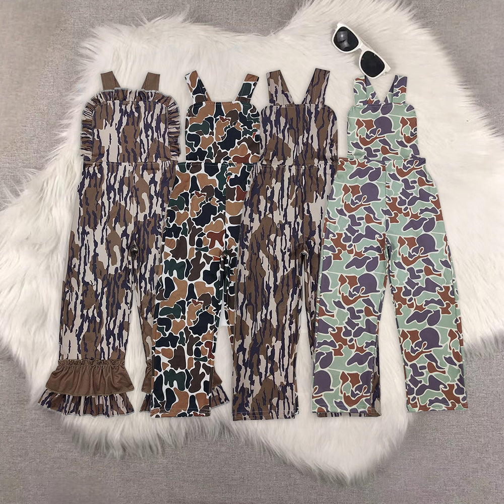 4 Colors Camo Print Kids Summer Jumpsuits Sisters Wear