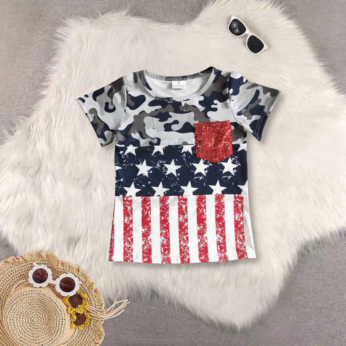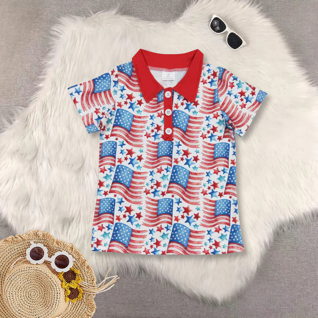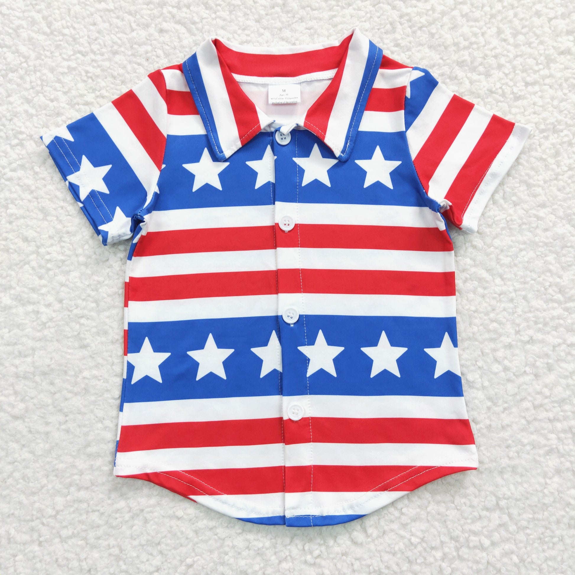 4 Colors Stars Red Stripes Boys 4th of July Buttons Tee Shirts Top Brothers Wear