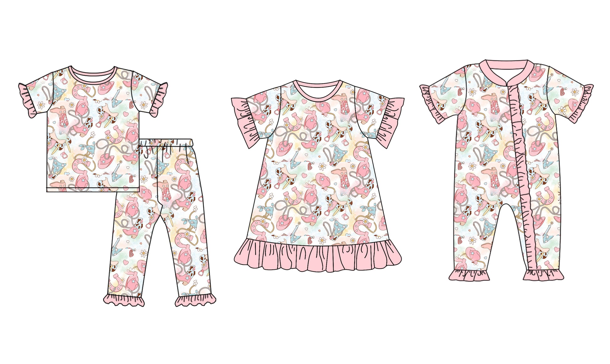 5.1(Custom Design Preorder MOQ 5 Each Design) Boots Hat Western Pink Print Girls Matching Clothes Sisters Wear