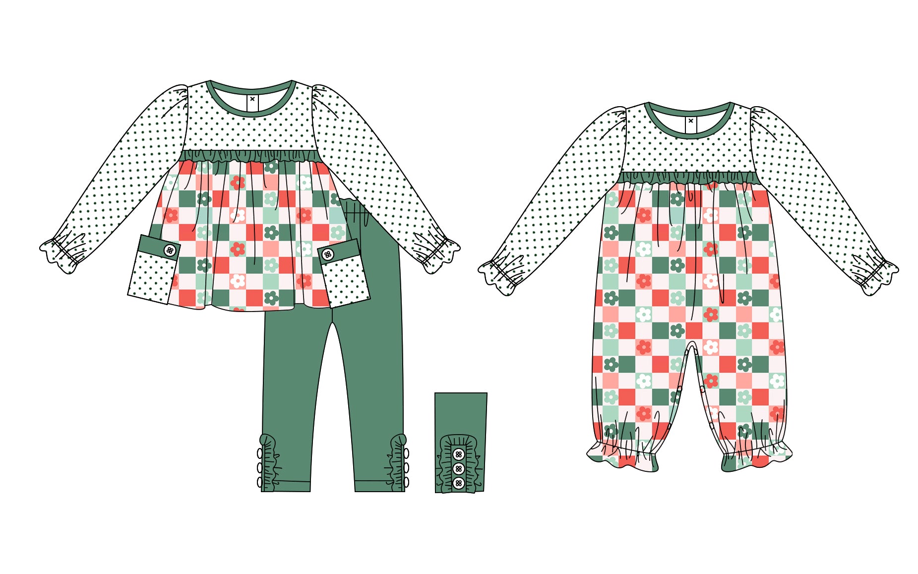 5.22(Custom Design Preorder MOQ 5 Each Design) Flowers Plaid Print Girls Christmas Matching Clothes Sisters Wear