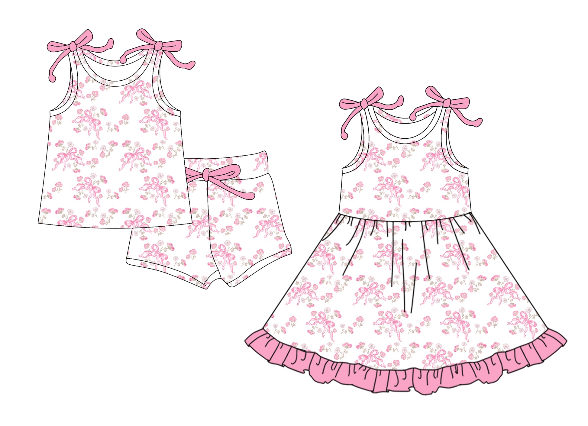 5.22(Custom Design Preorder MOQ 5 Each Design) Pink Small Flowers Print Girls Summer Matching Clothes Sisters Wear