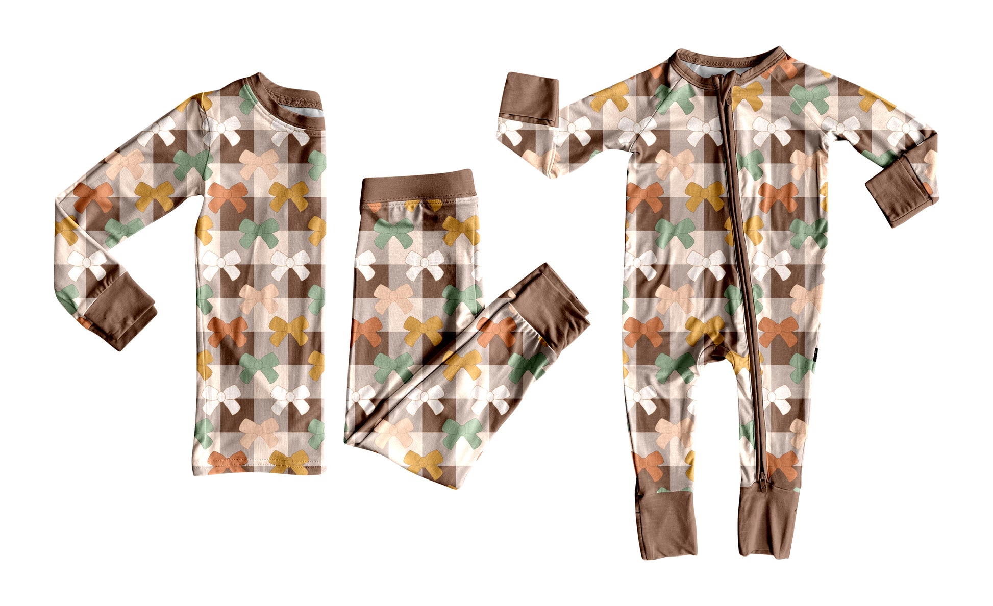 5.24(Custom Design Preorder MOQ 5 Each Design) Colorful Bows Plaid Print Girls Fall Pajamas Matching Clothes Sisters Wear