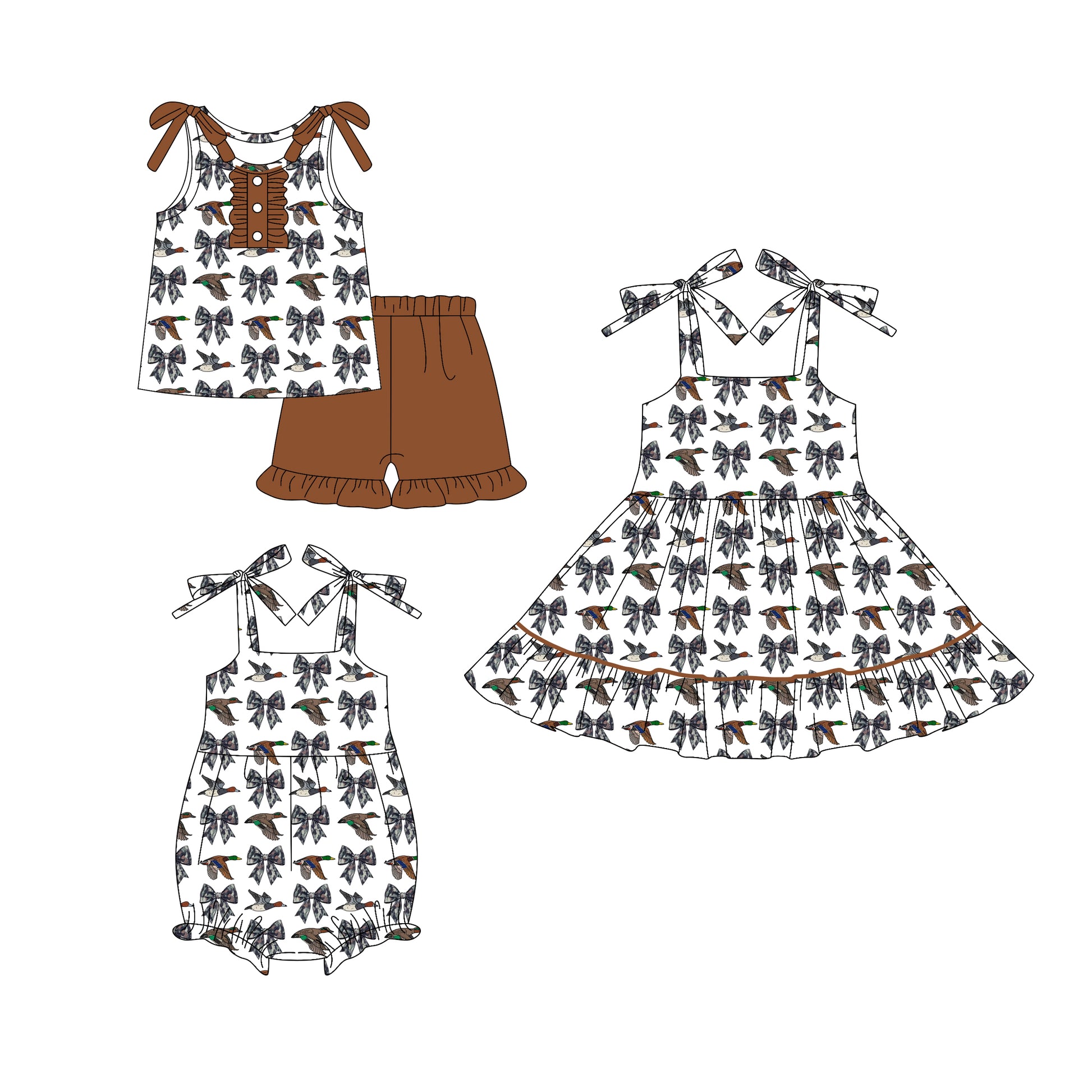 5.24(Custom Design Preorder MOQ 5 Each Design) Duck Bows Print Girls Summer Matching Clothes Sisters Wear