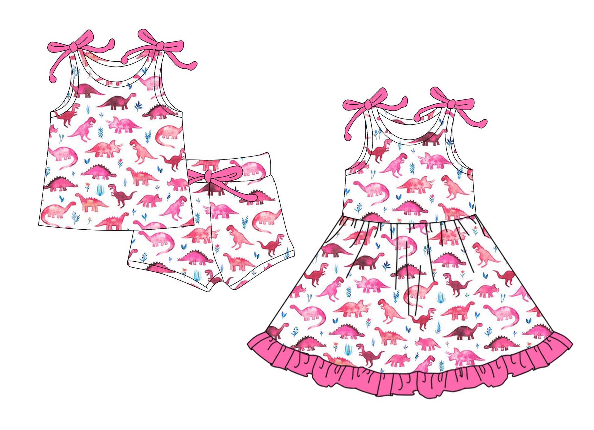 5.24(Custom Design Preorder MOQ 5 Each Design) Pink Dino Print Girls Summer Matching Clothes Sisters Wear