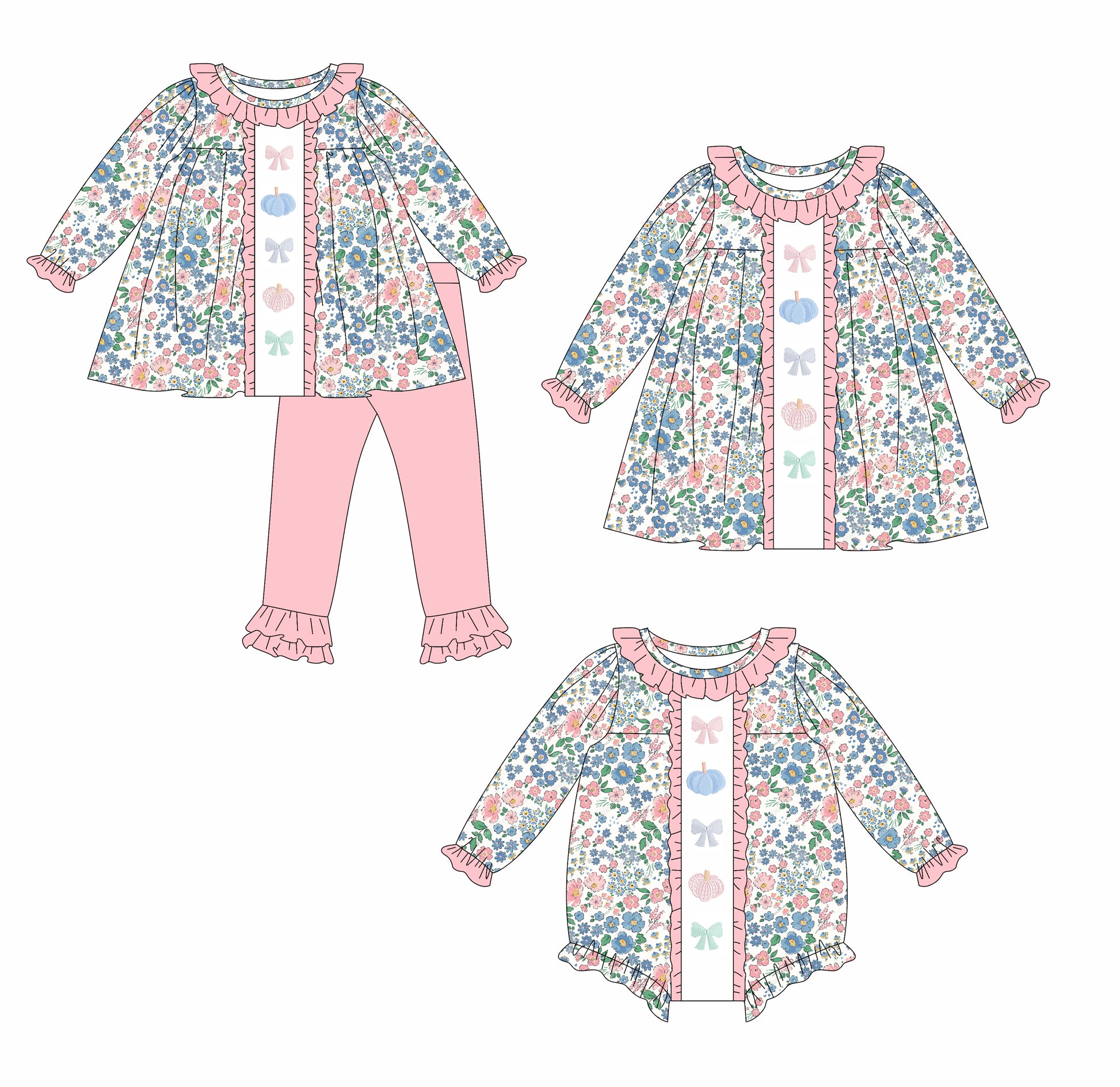 5.24(Custom Design Preorder MOQ 5 Each Design) Pumpkin Flowers Print Girls Fall Matching Clothes Sisters Wear