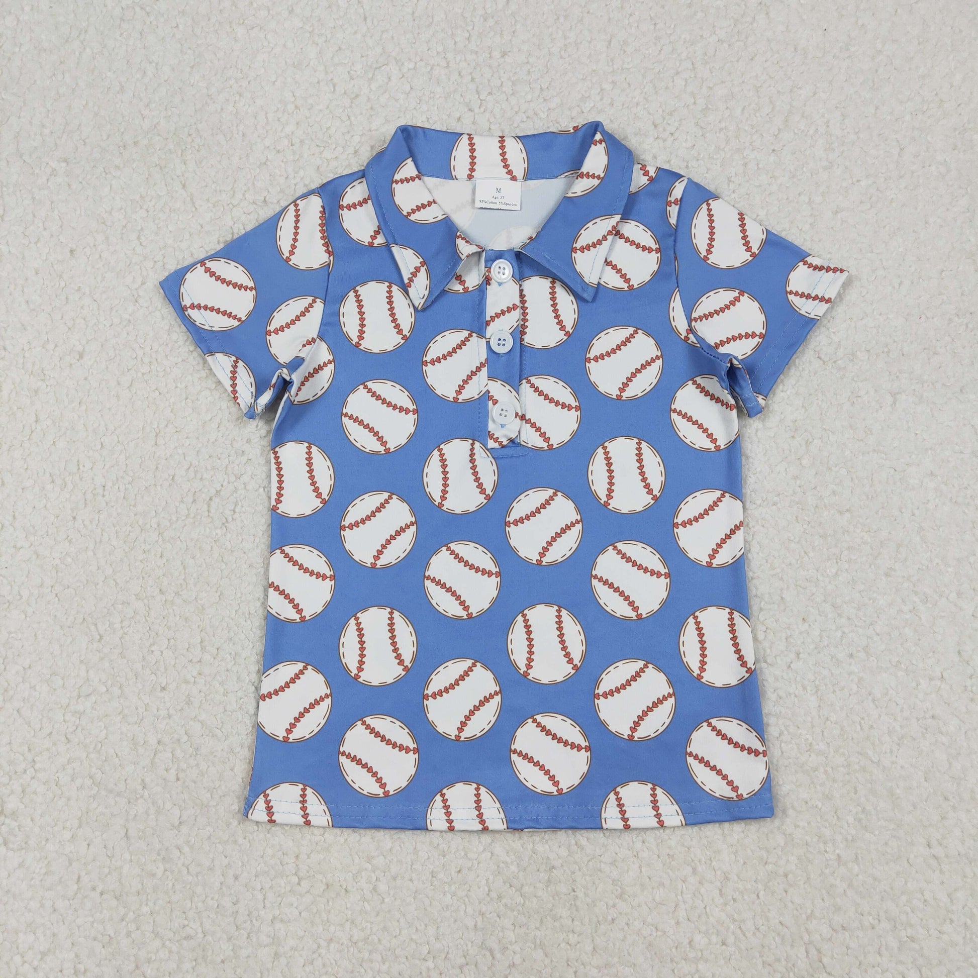 5 Colors Baseball Print Boys Summer Polo Tee Shirts Top Brothers Wear
