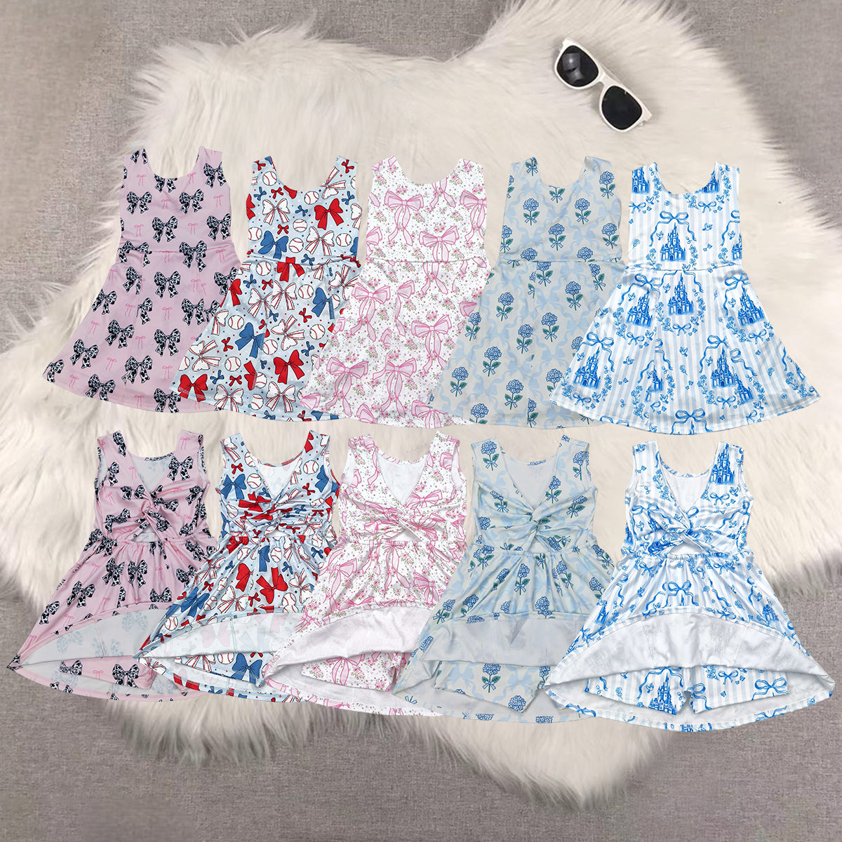 5 Colors Bows Print Girls Summer Shorts Knee Length Yoga Dress