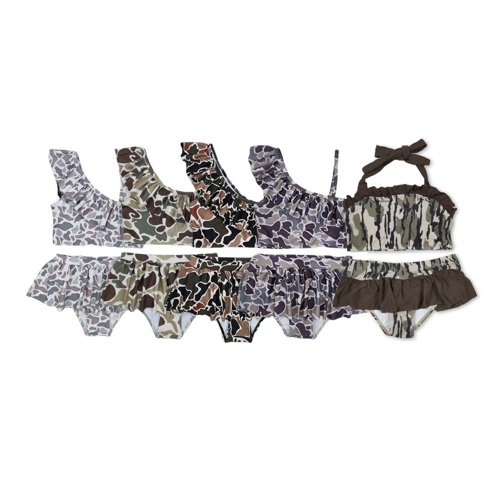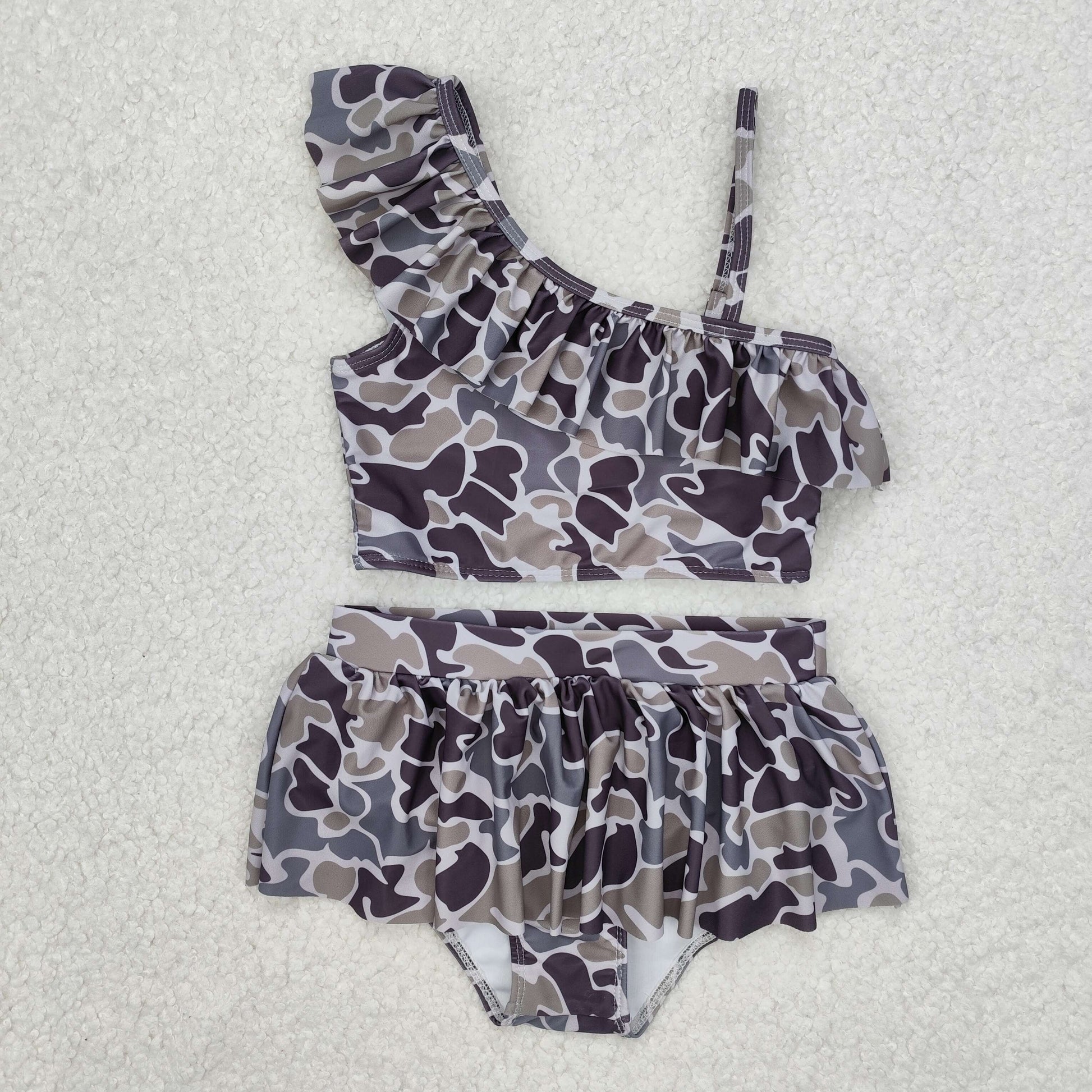5 Colors Camo Print Ruffles Girls 2 Pieces Summer Swimsuits Sisters Wear