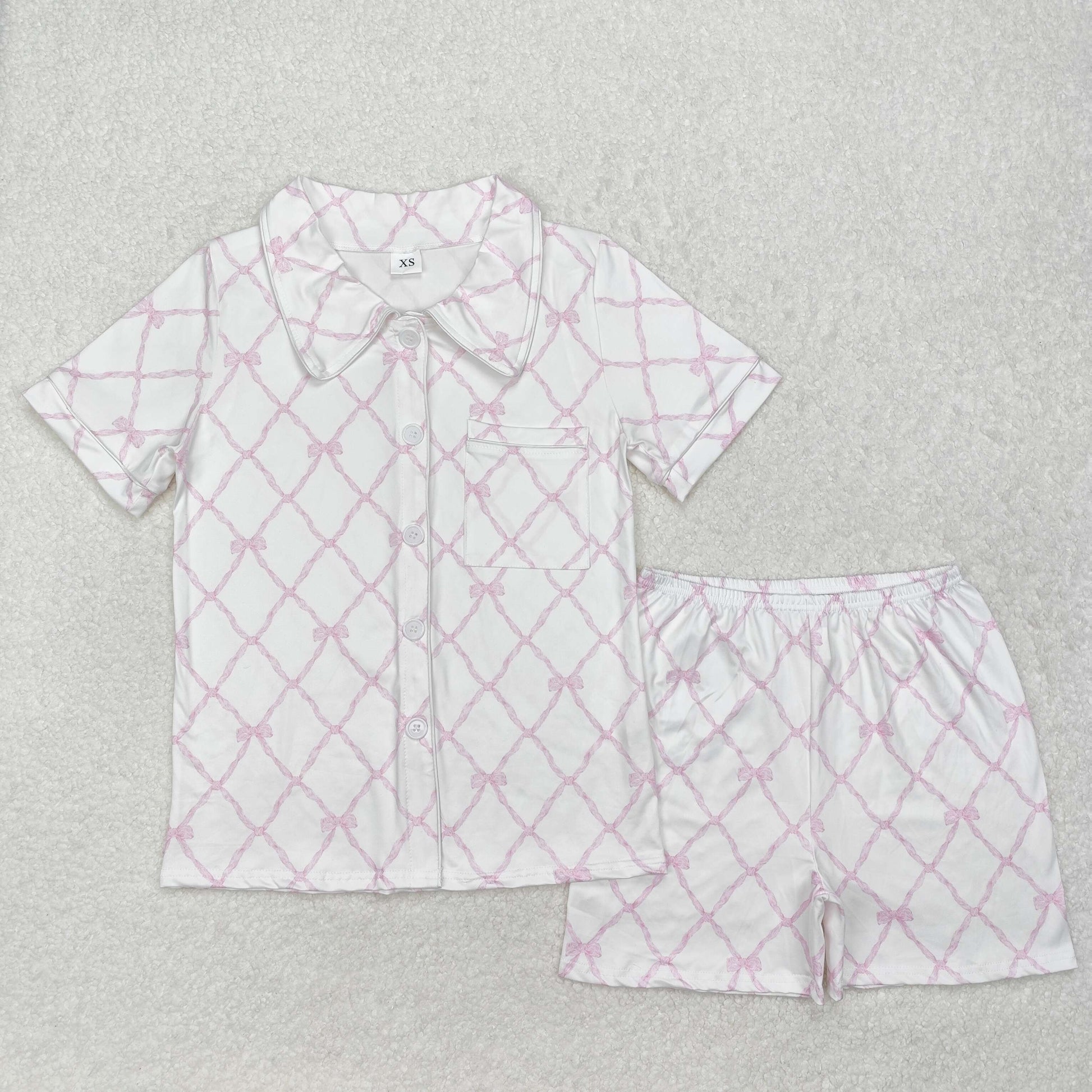 6 Colors Bows Print Adult Summer Buttons Pajamas Clothes Set
