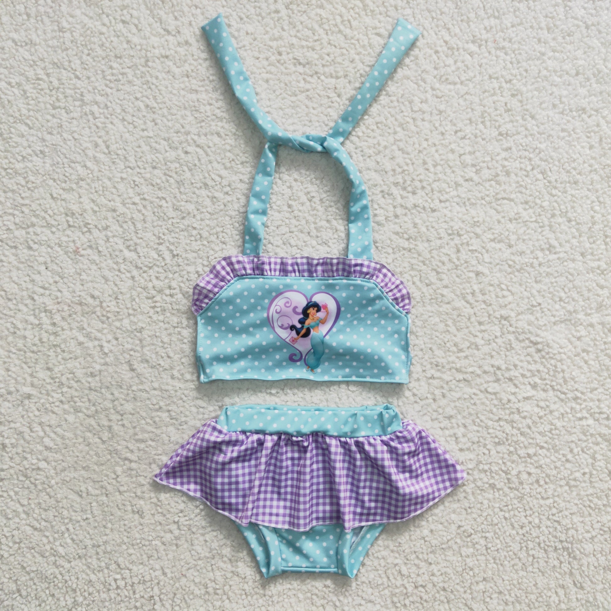 6 colors Cartoon Princess Girls 2 Pieces Swimsuits Sisters Wear