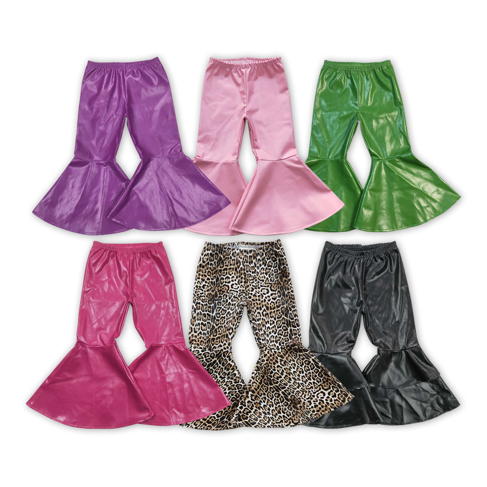 6 Colors Girls Leather Ruffle Bell Bottom Pants