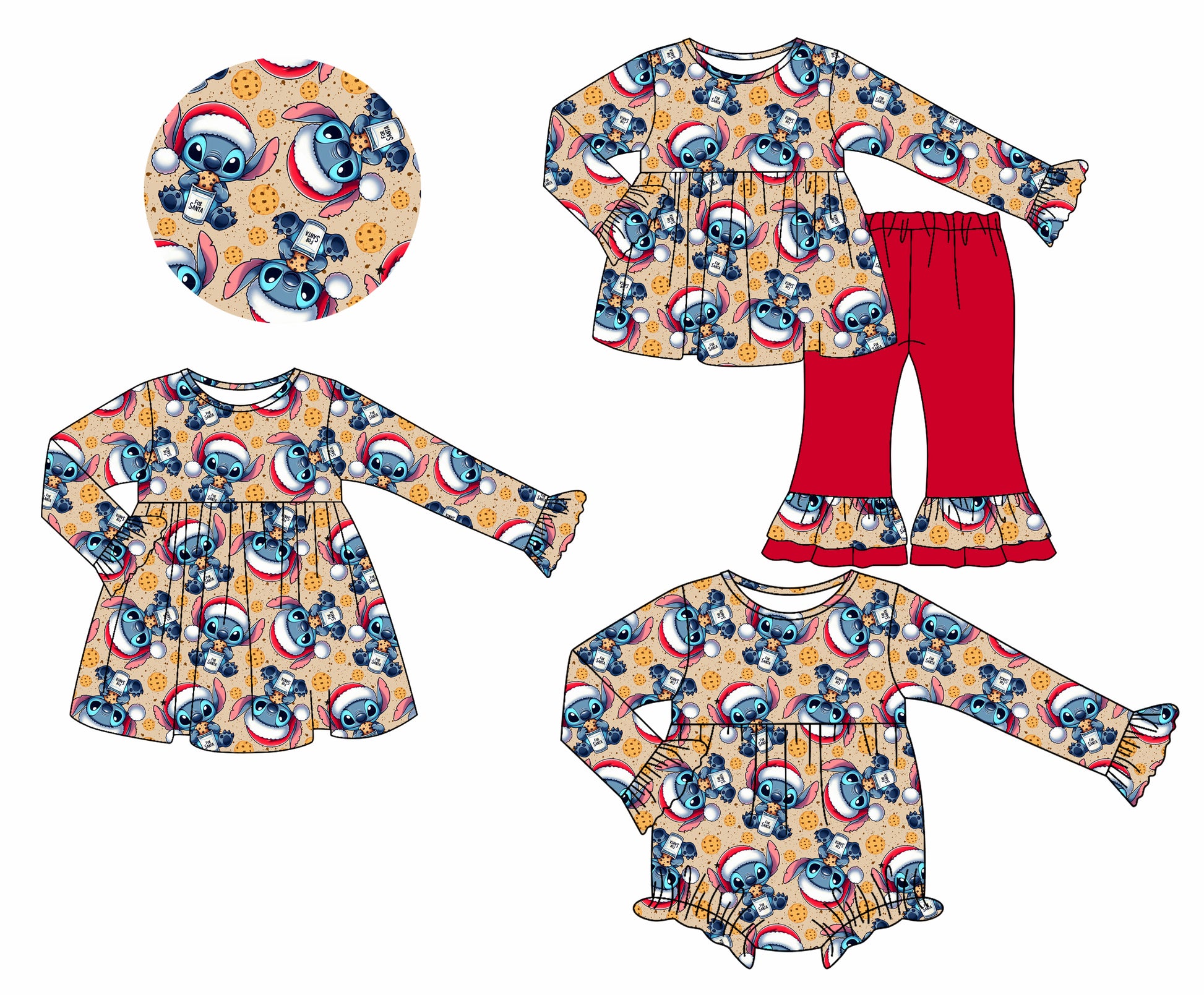 7.16(Custom Design Preorder MOQ 5 Each Design) Cartoon Stitc* Print Girls Christmas Matching Clothes Sisters Wear