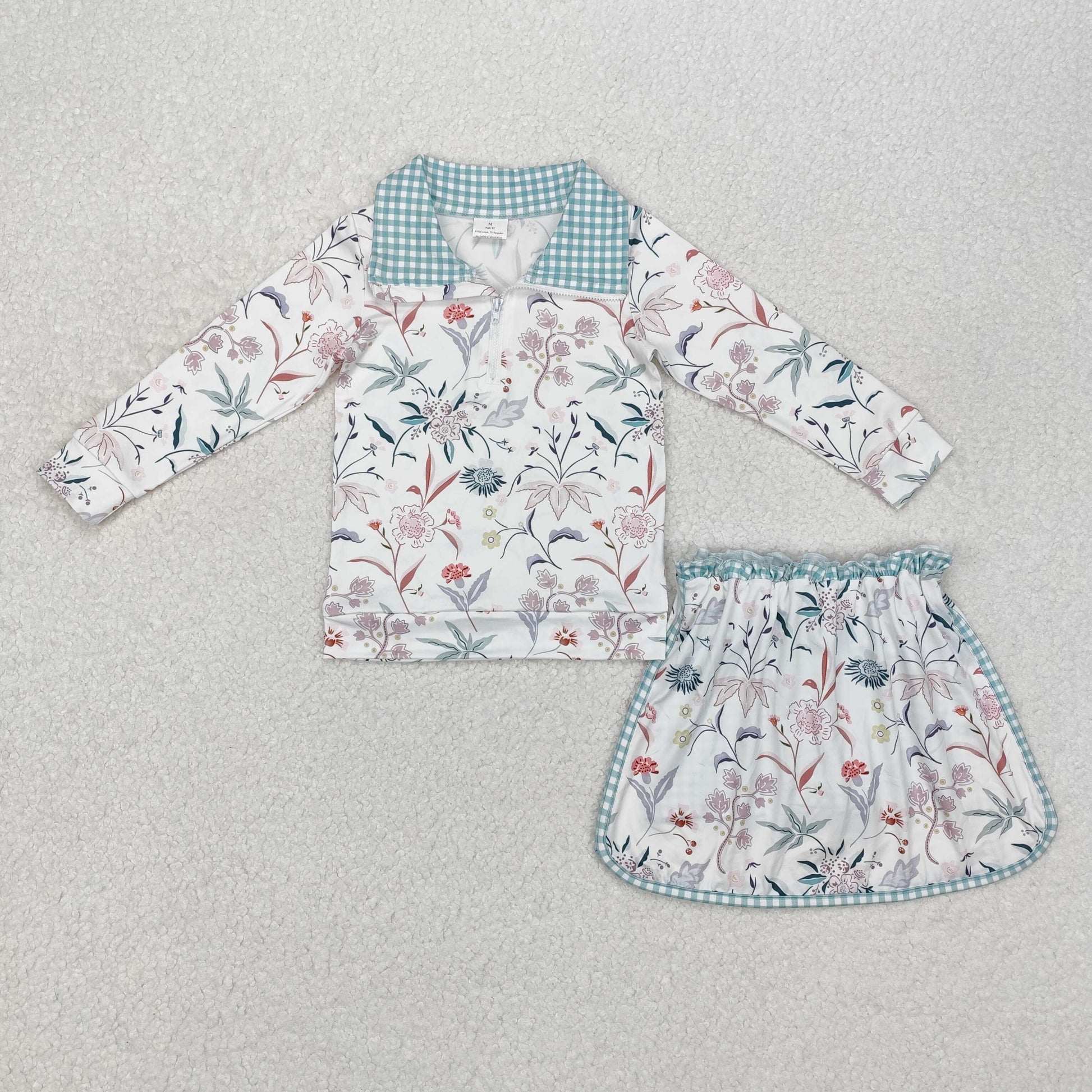 7 Colors Flowers Long Sleeve Zip Top Skirts Shorts Girls Sports Clothes Set Sisters Wear