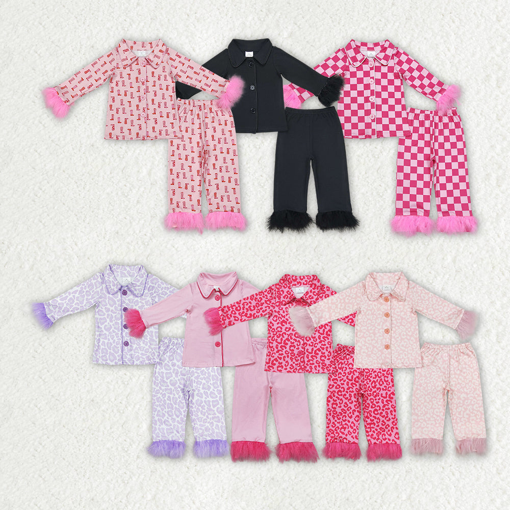 7 Colors Girls Fall Buttons Fur Pajamas Clothes Set
