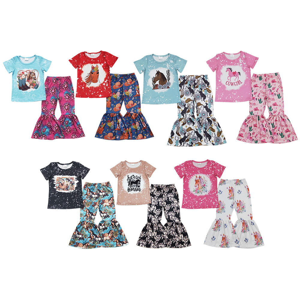 7 Colors Horse Western Print Bell Pants Girls Clothes Set