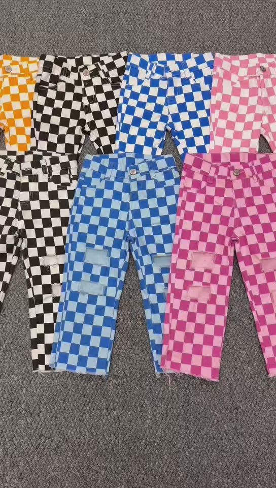 7 Colors Plaid Denim Jeans Kids Matching Pants Sibling Wear