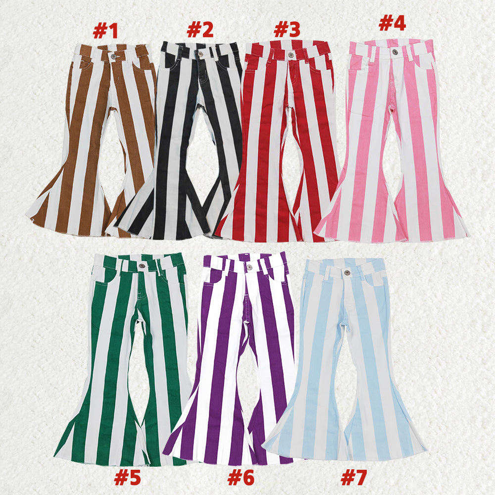 7 Colors Stripes Denim Bell Bottom Jeans Girls Pants Sisters Wear