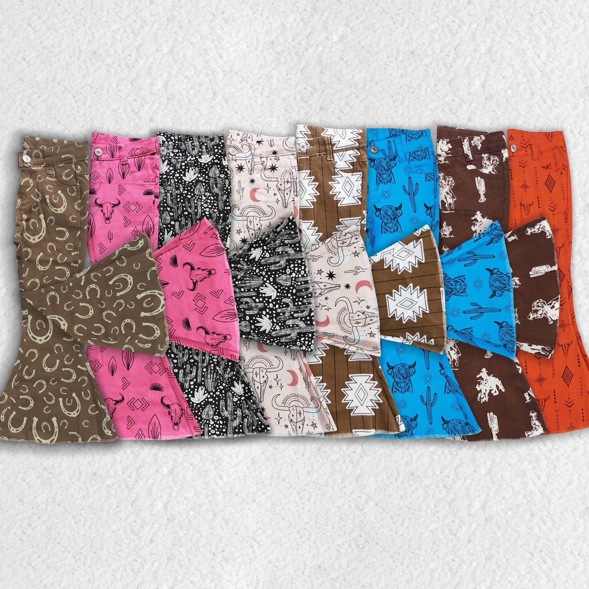 8 Print Denim Fabric Bell Bottom Jeans Girls Western Pants