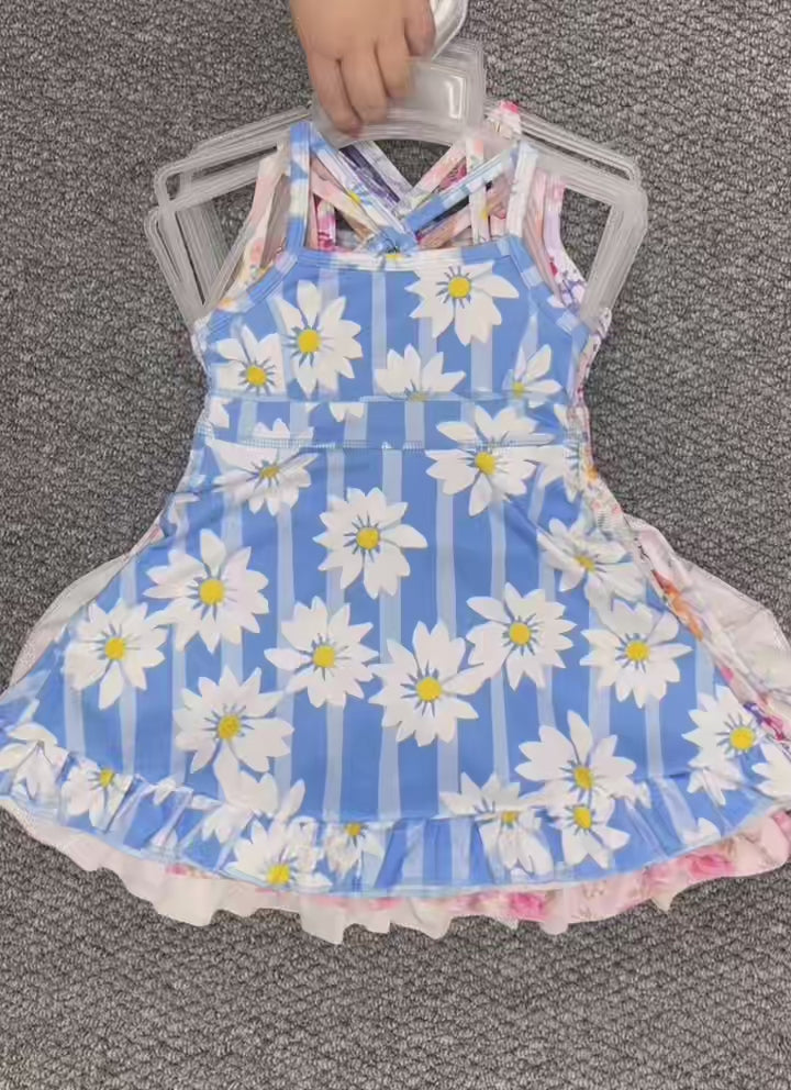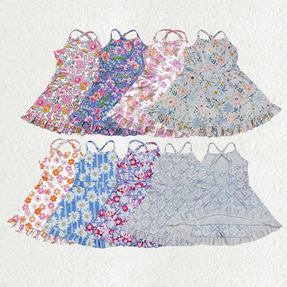 8 Print Flowers Girls Summer Knee Length Shorts Yoga Dress Sisters Wear