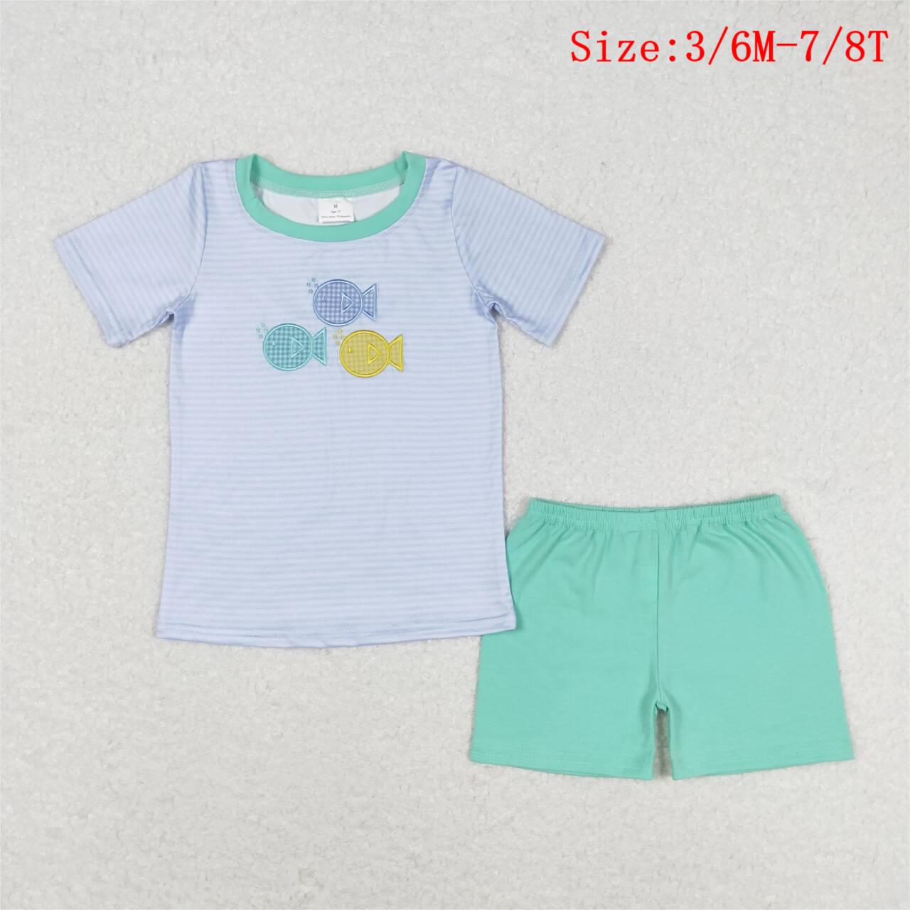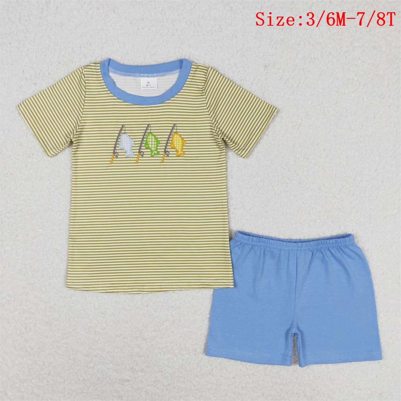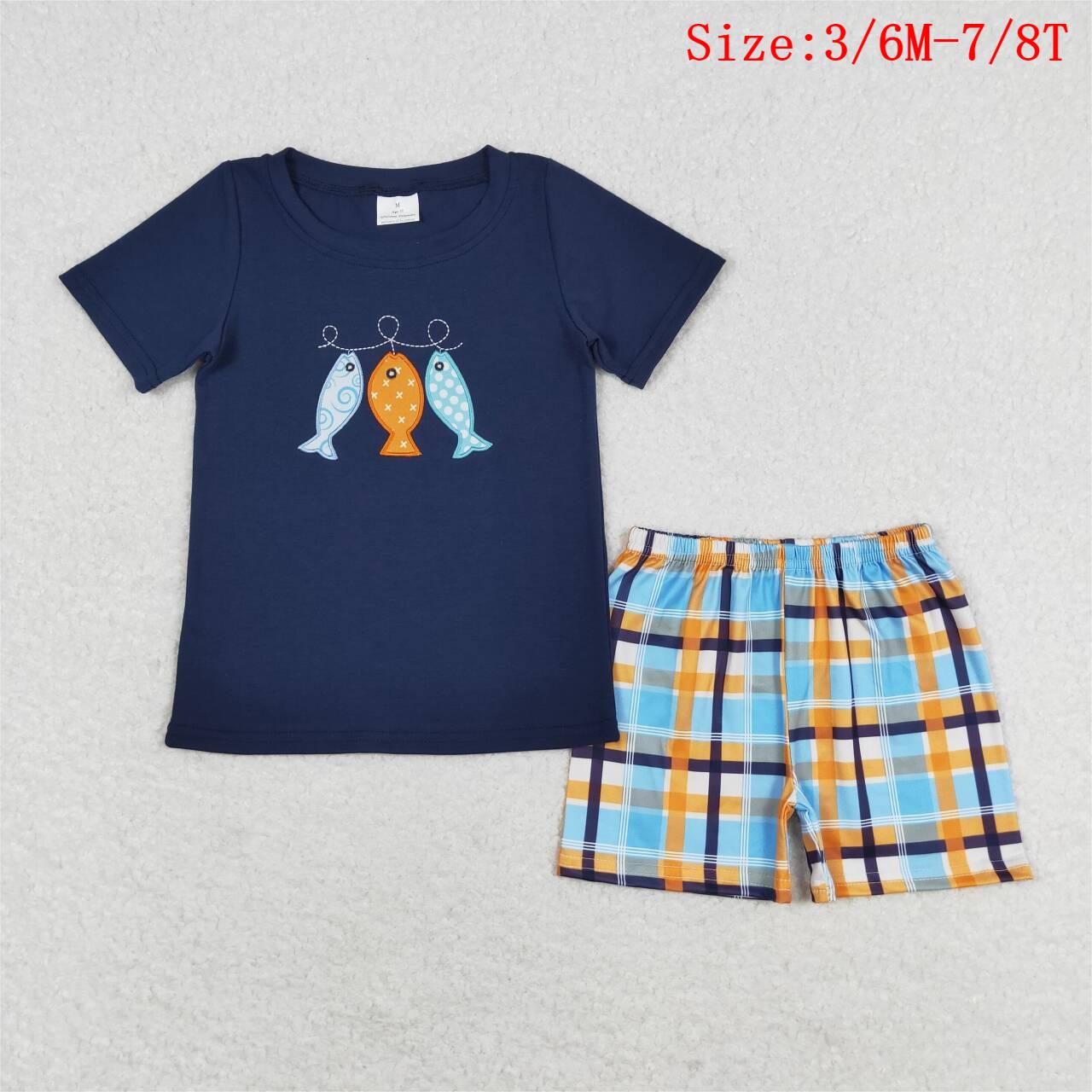8 Styles Fishing Embroidery Shorts Boys Summer Clothes Set Brothers Wear