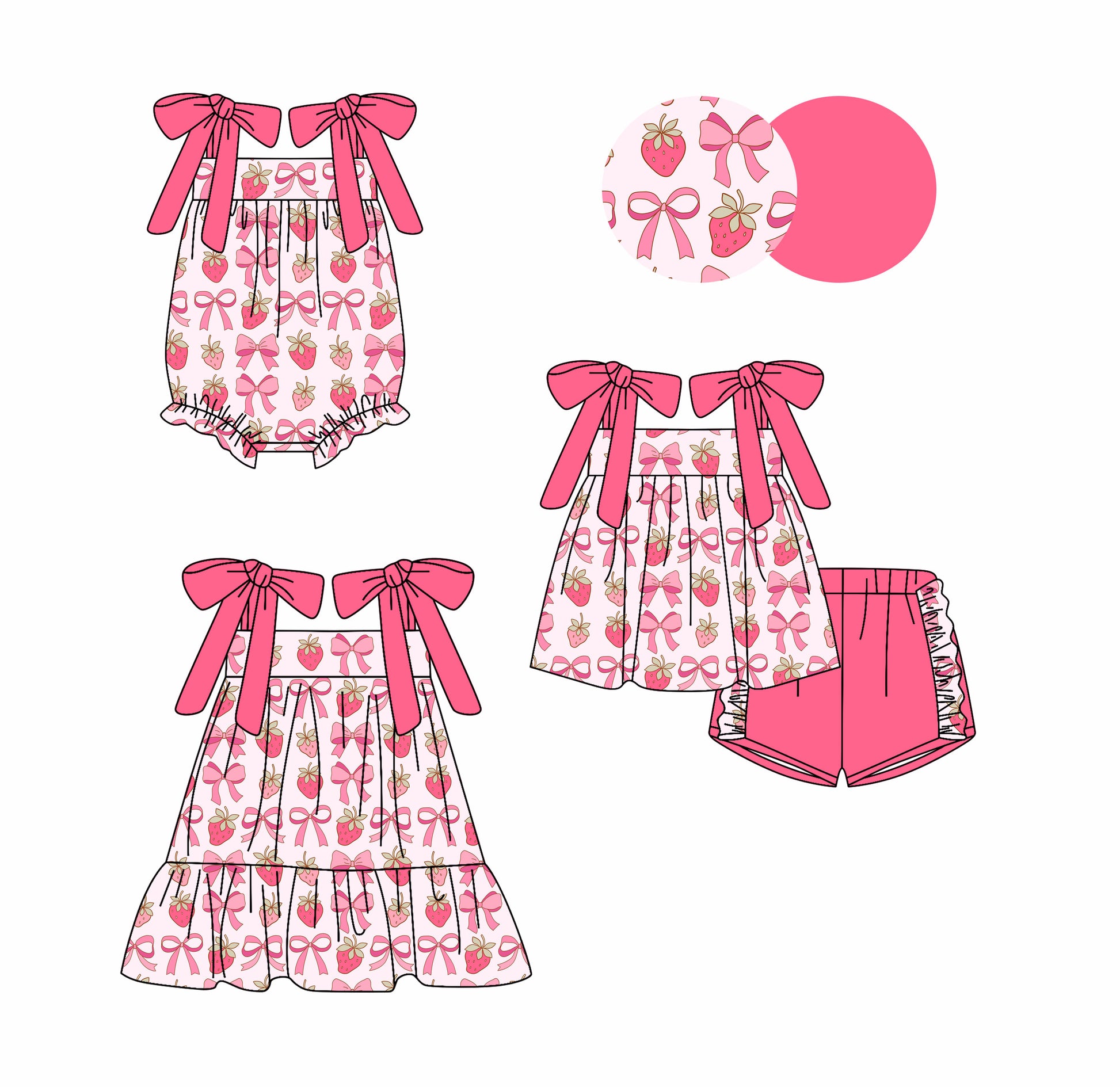 9.10 (Custom Design Preorder MOQ 5 Each Design) Strawberry Bows Pink Print Girls Summer Matching Clothes Sisters Wear