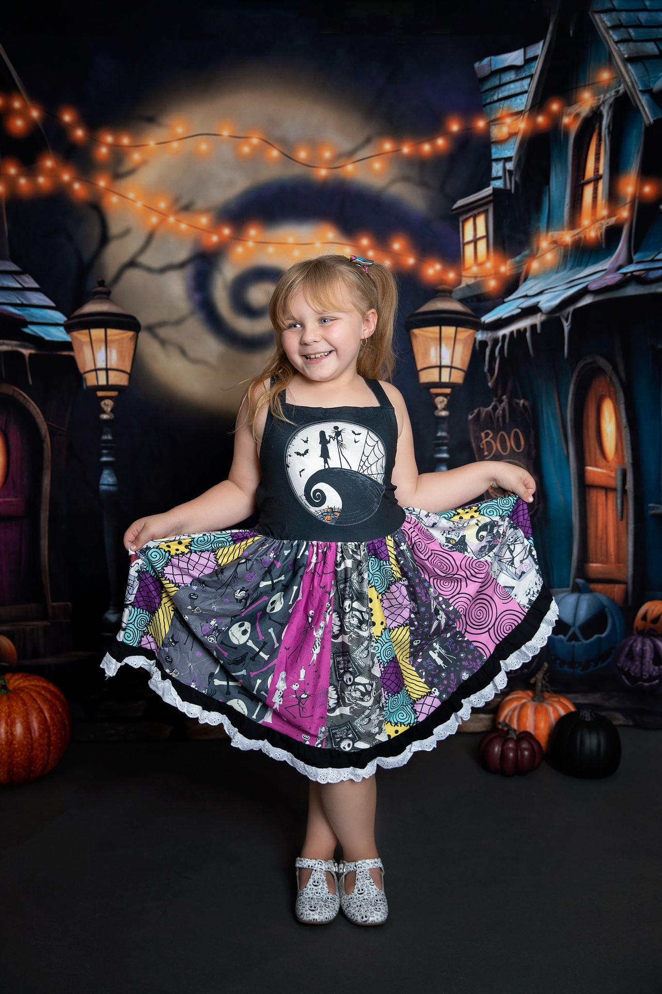 A8-14 Sleeveless movie character print girls twirl Halloween knee length dress