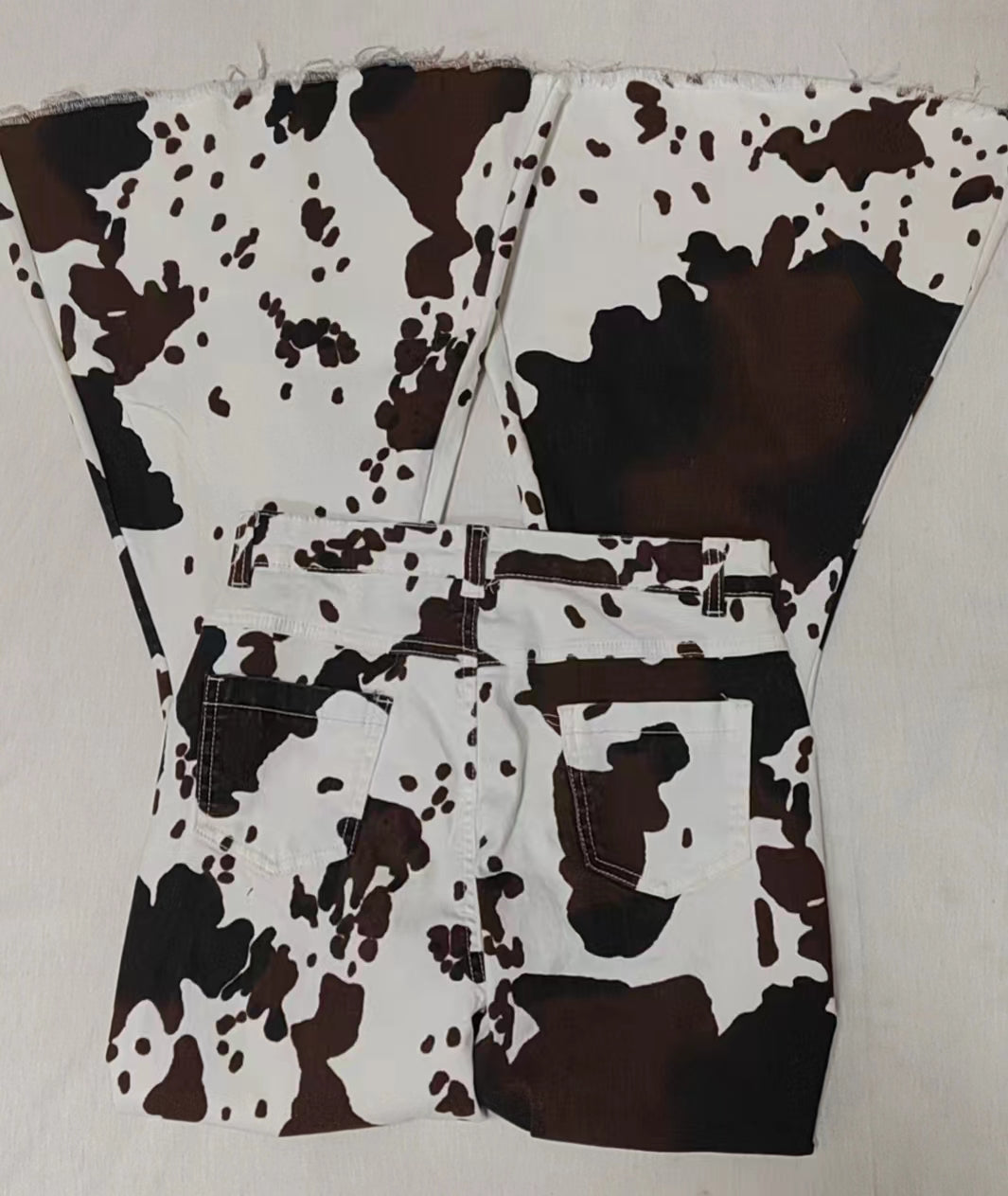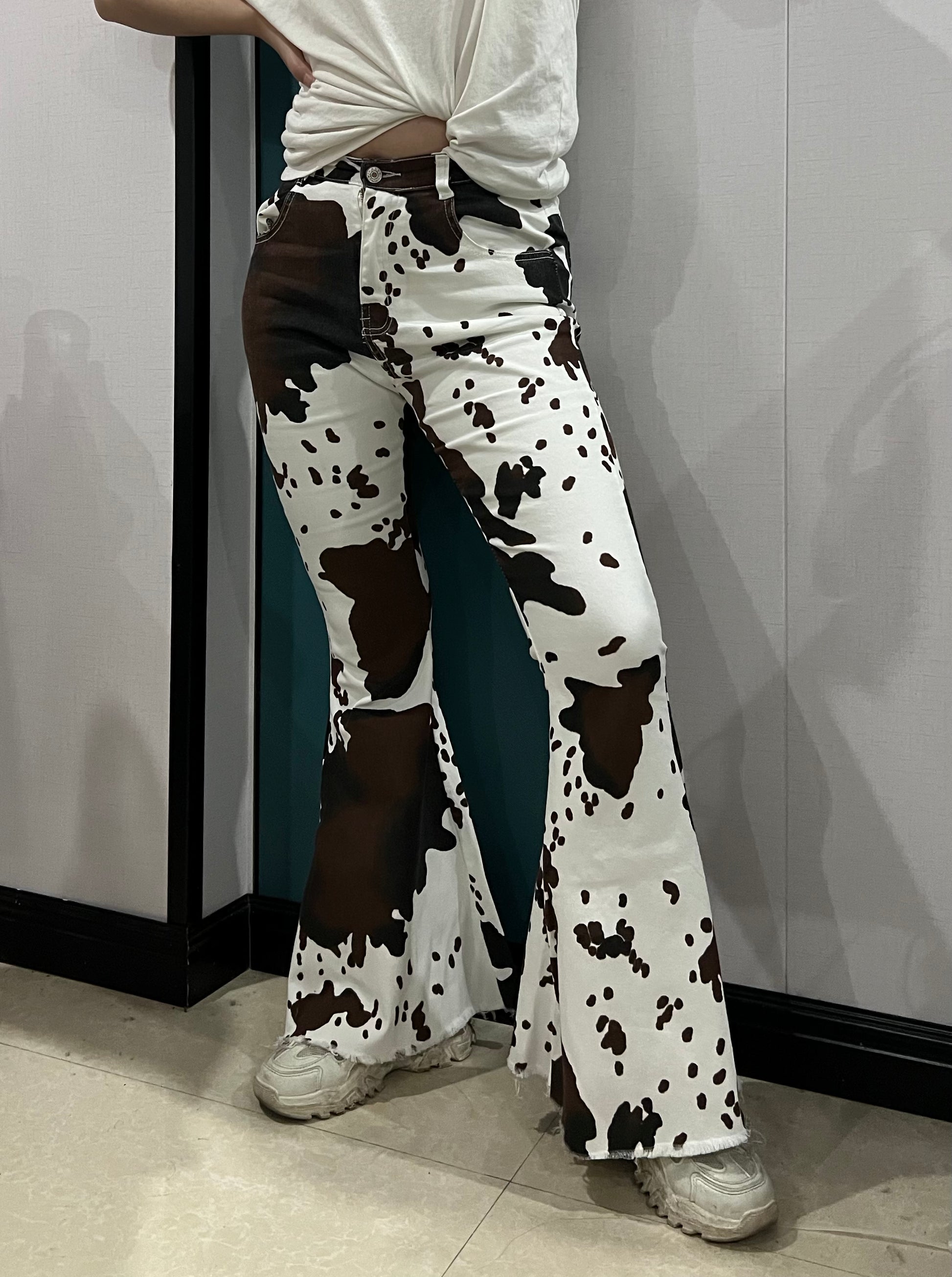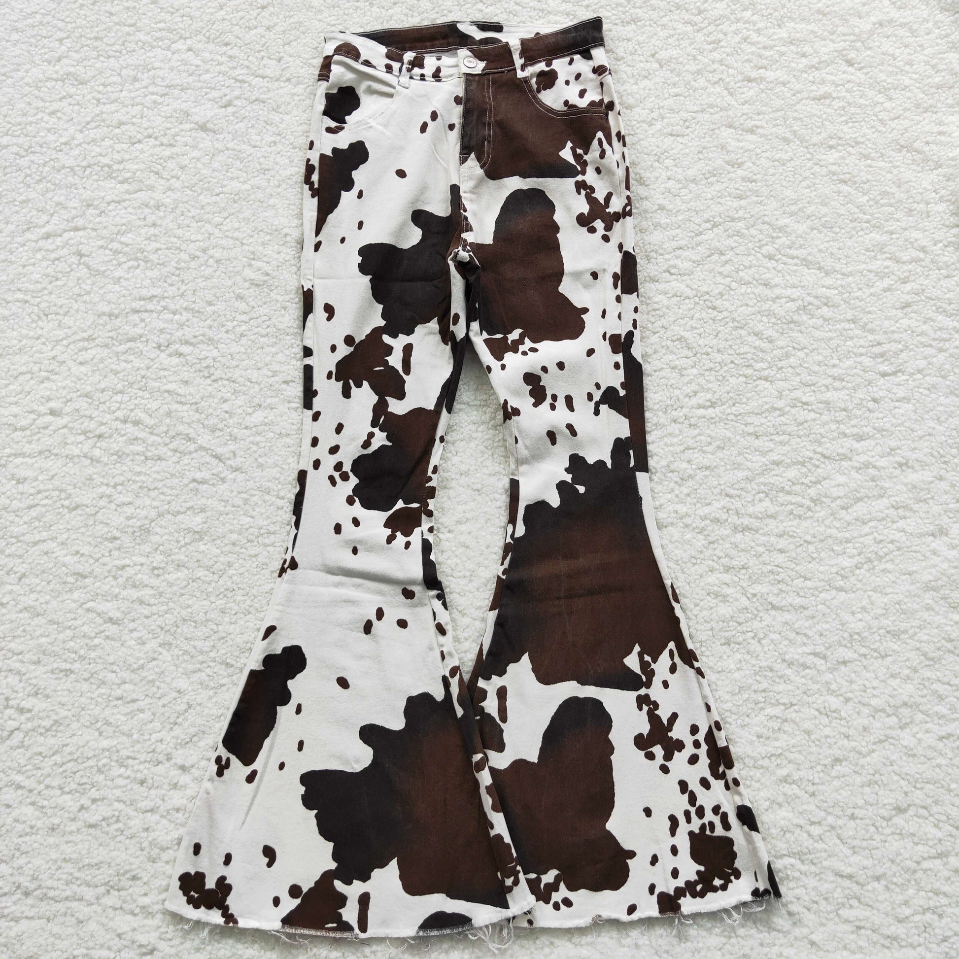 Adult cow print denim western bell bottom jeans P0120