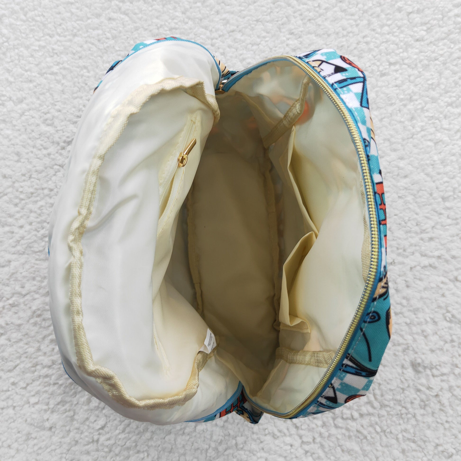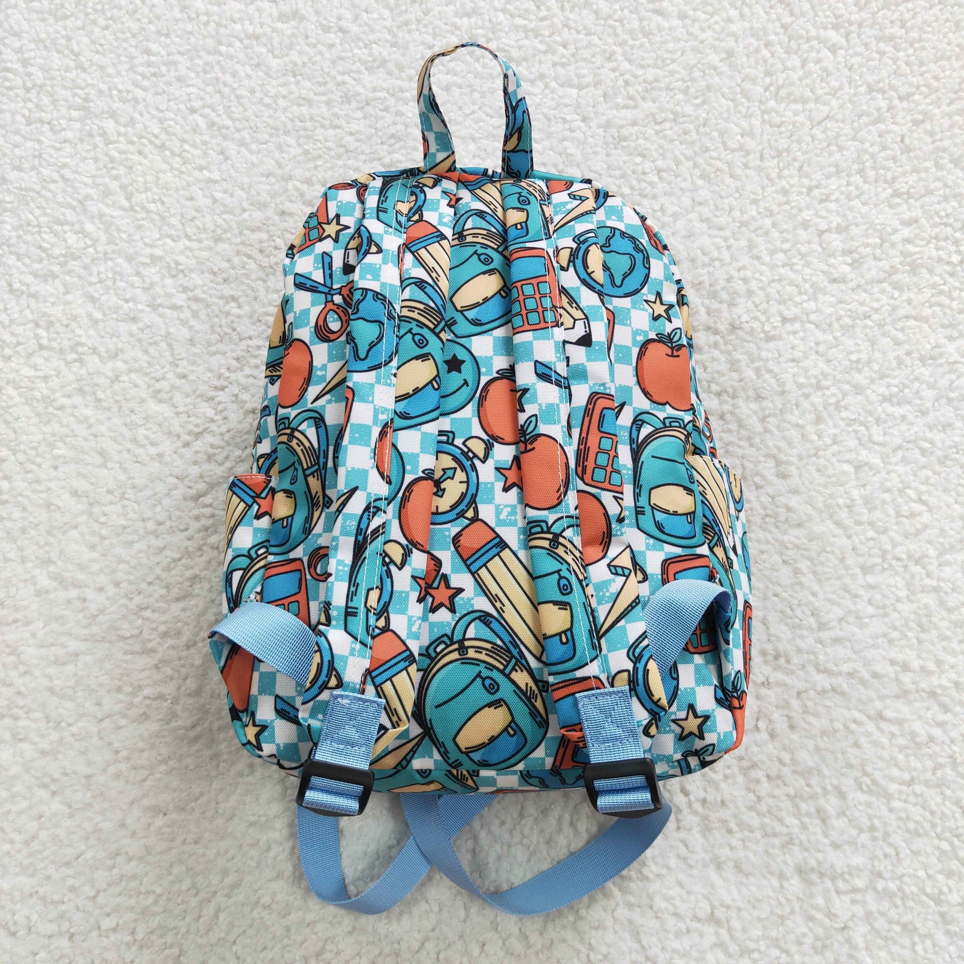 BA0071 Blue gingham kids bag smiling back to school backpack