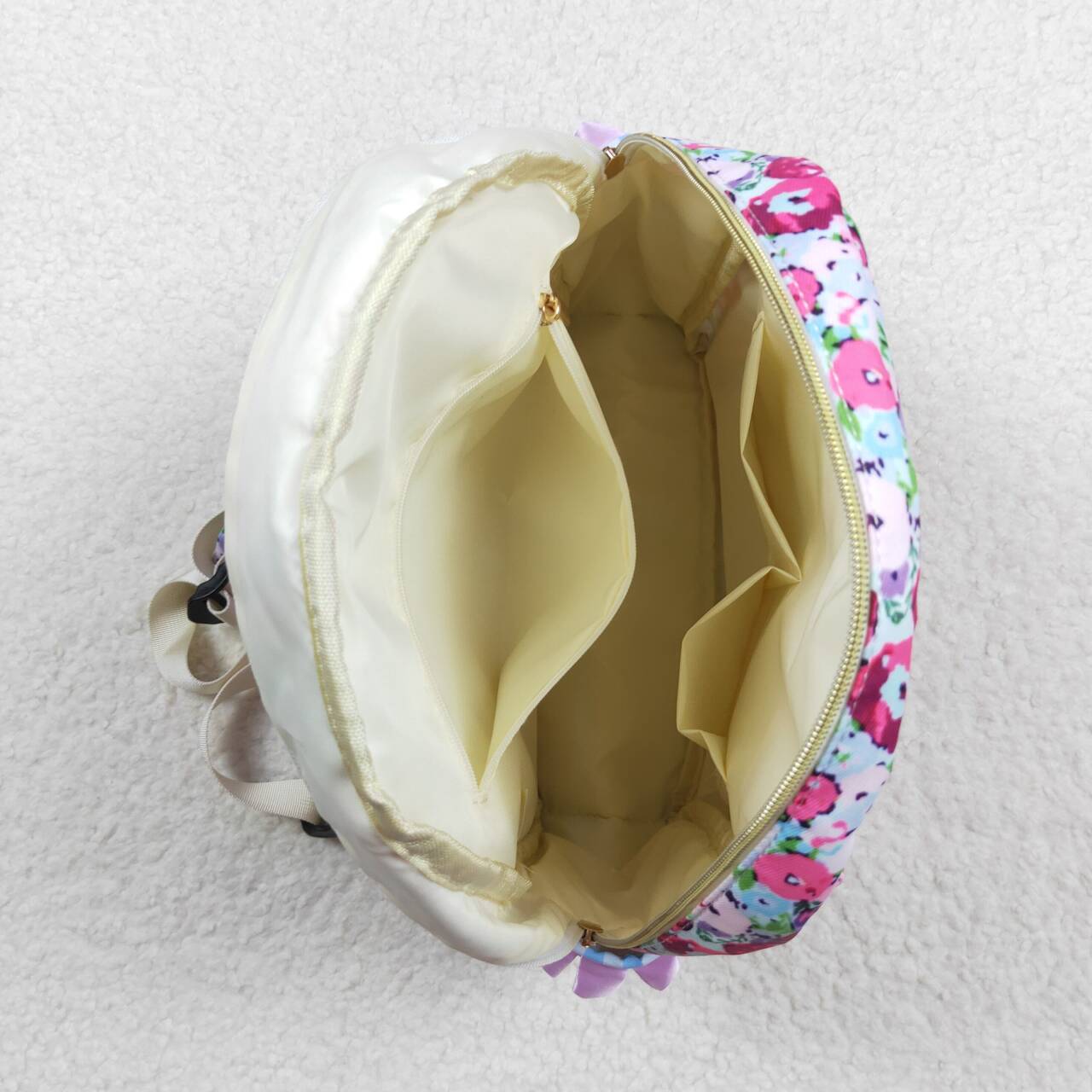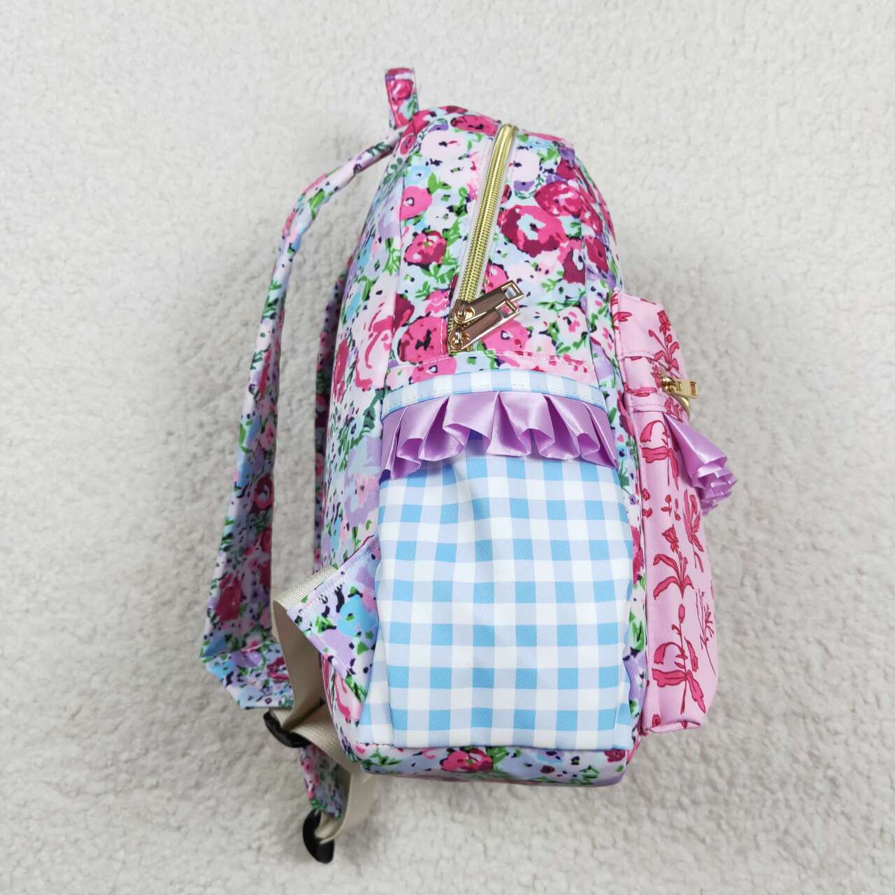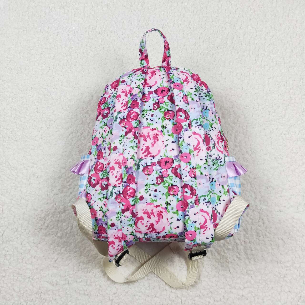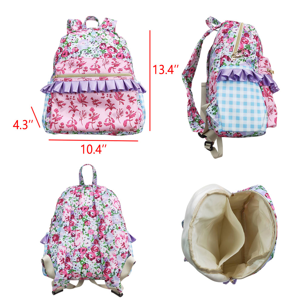 BA0099 Girls Bag Purple Flowers Print Ruffles Backpack