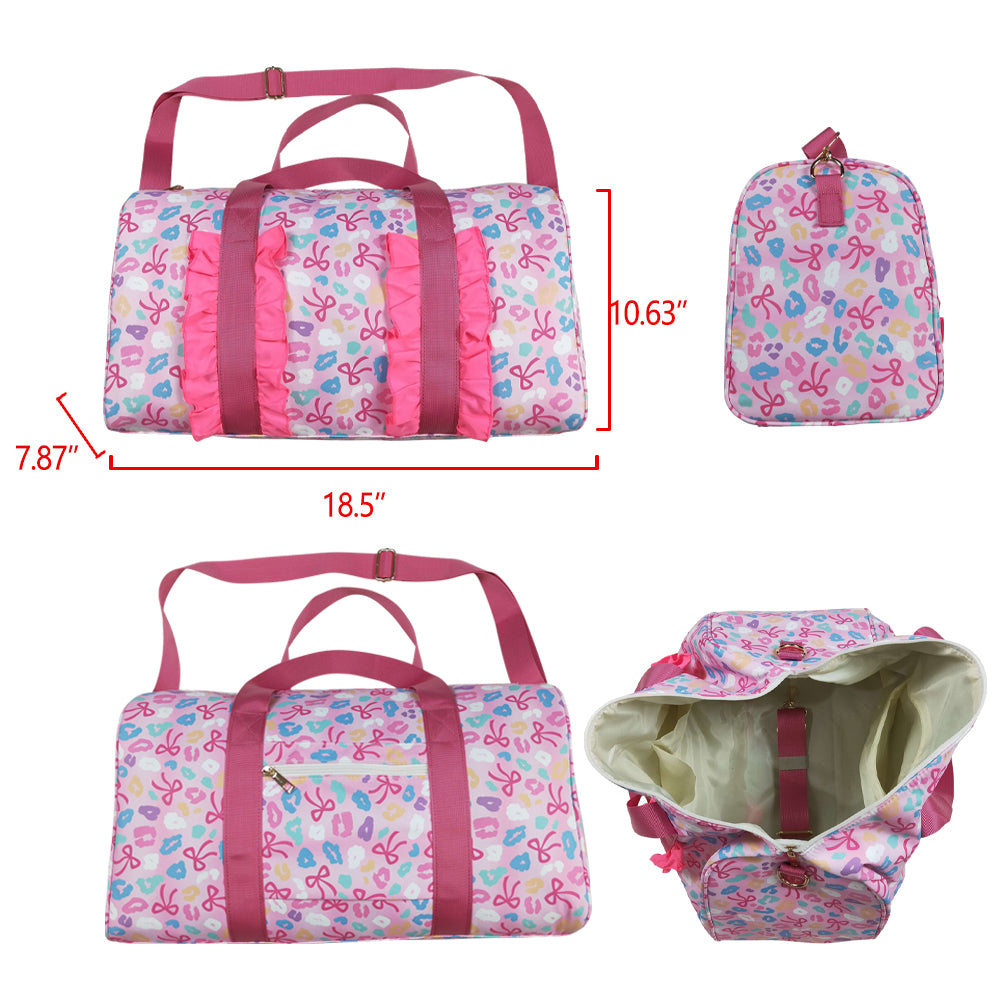 BA0320 Colorful Leopard Bows Print Girls Gym Bag Overnight Bags