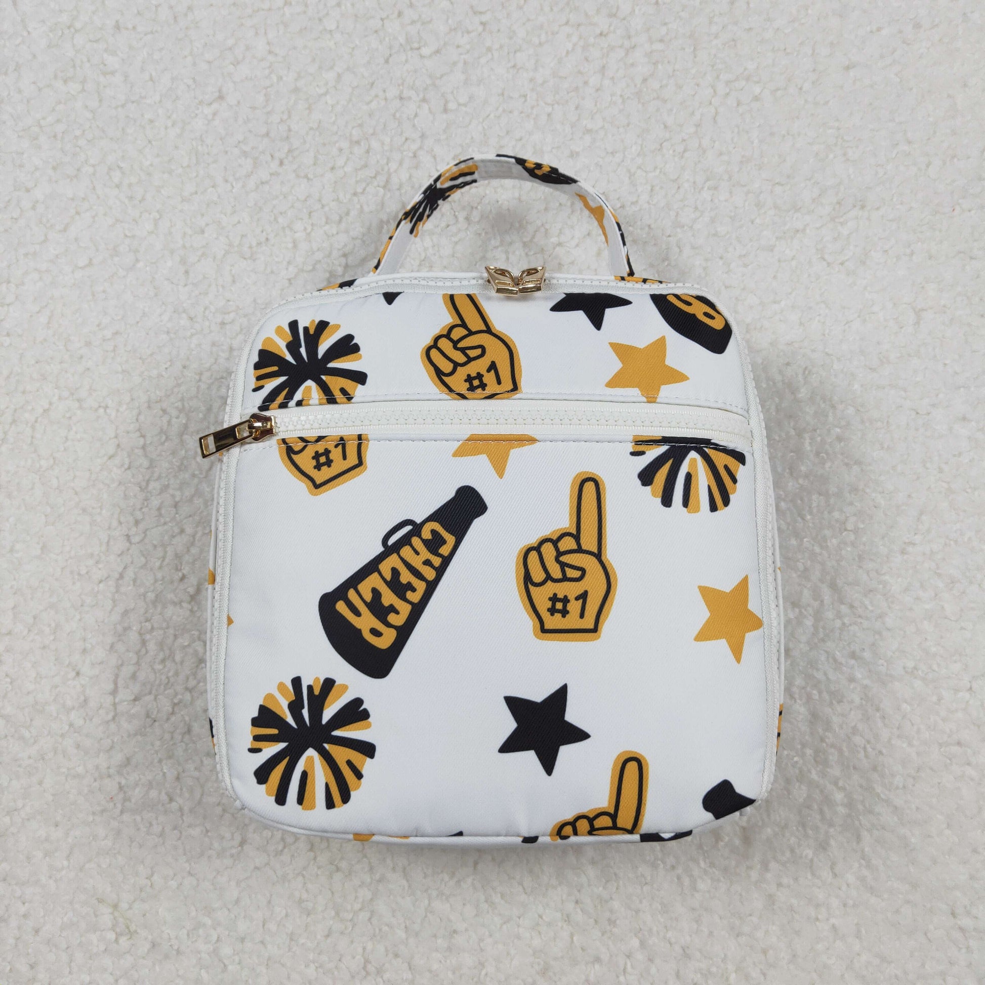BA0362 Go Team Cheer Stars Yellow Print Lunch Boxes Girls Picnic Thermal Bags