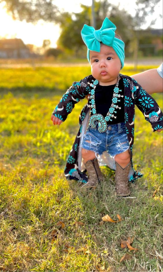 (Promotion)Baby girls turquoise cow skull western cardigan 6 B4-14