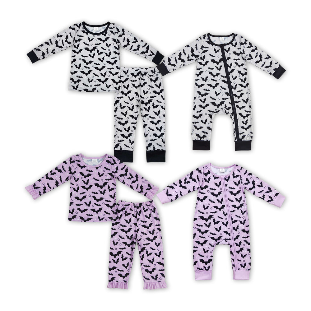 Bat Print Sibling Halloween Bamboo Pajamas Matching Clothes