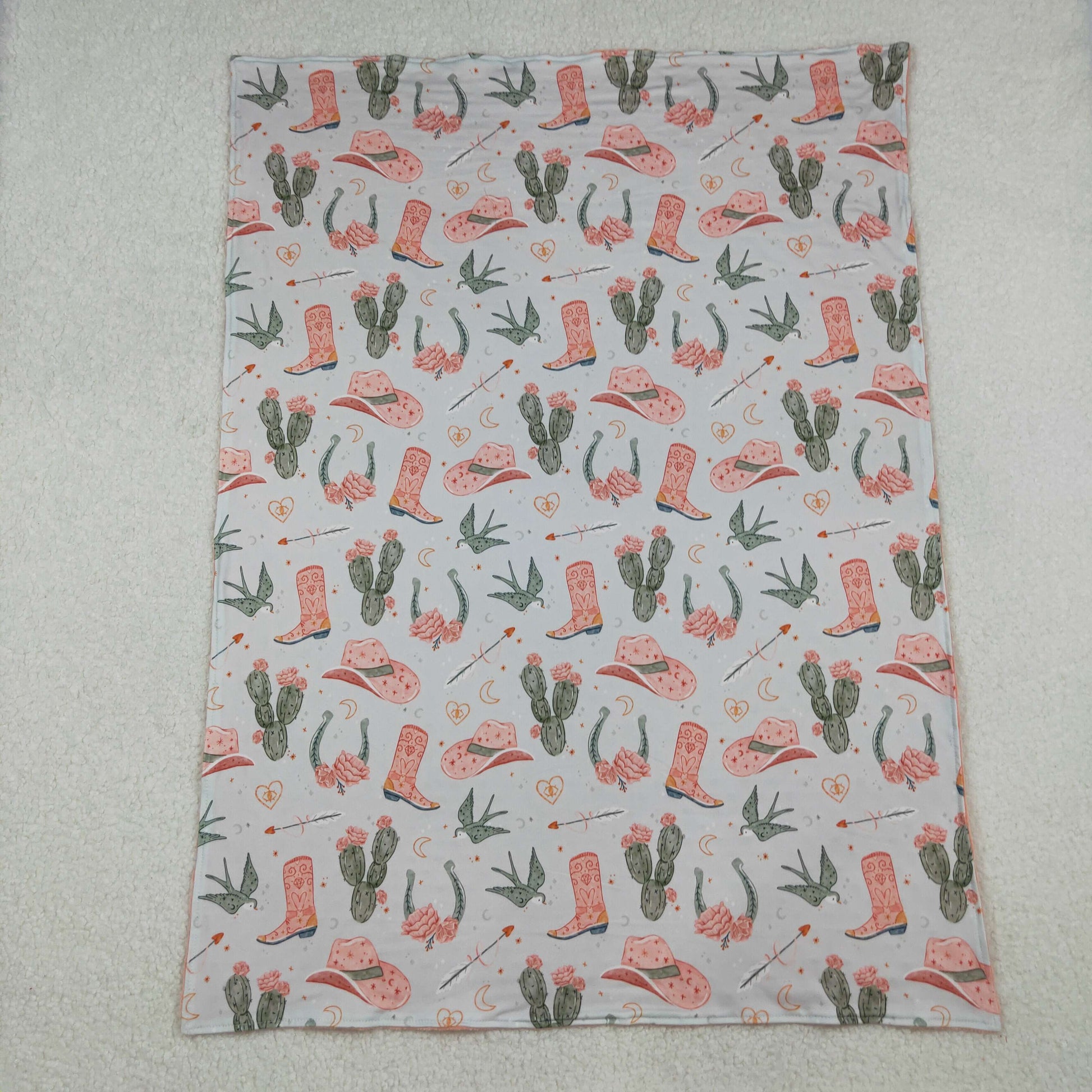 BL0177 Pink Boots Hat Cactus Print Baby Girls Western Blanket