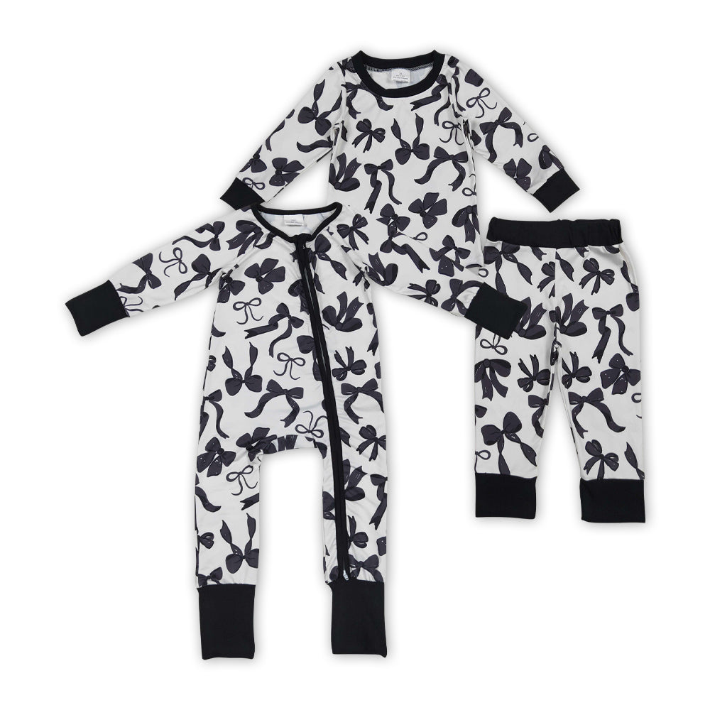 Black Bows Print Sisters Fall Pajamas Matching Clothes