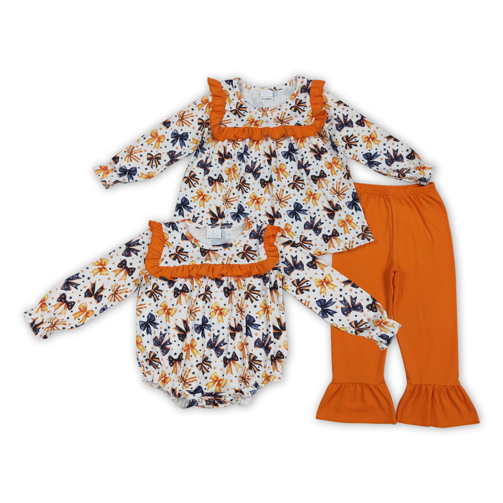 Black Orange Bows Girls Halloween Clothes Sisters Matching Wear