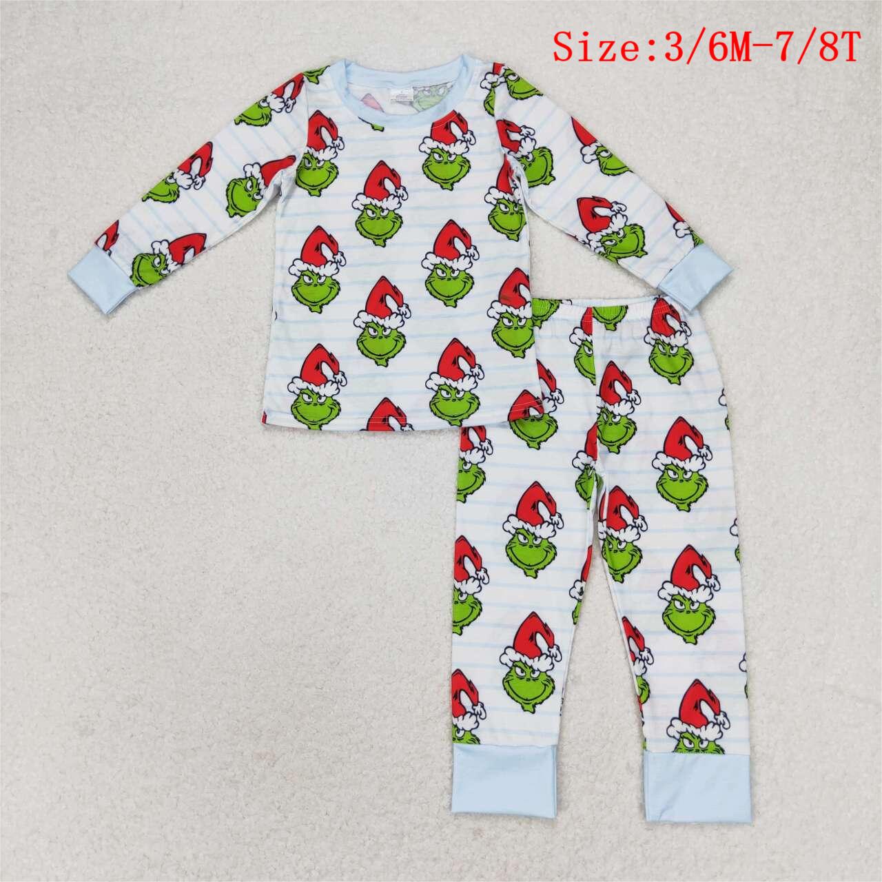 BLP0475 Green Frog Print Boys Christmas Pajamas Bamboo Clothes Set