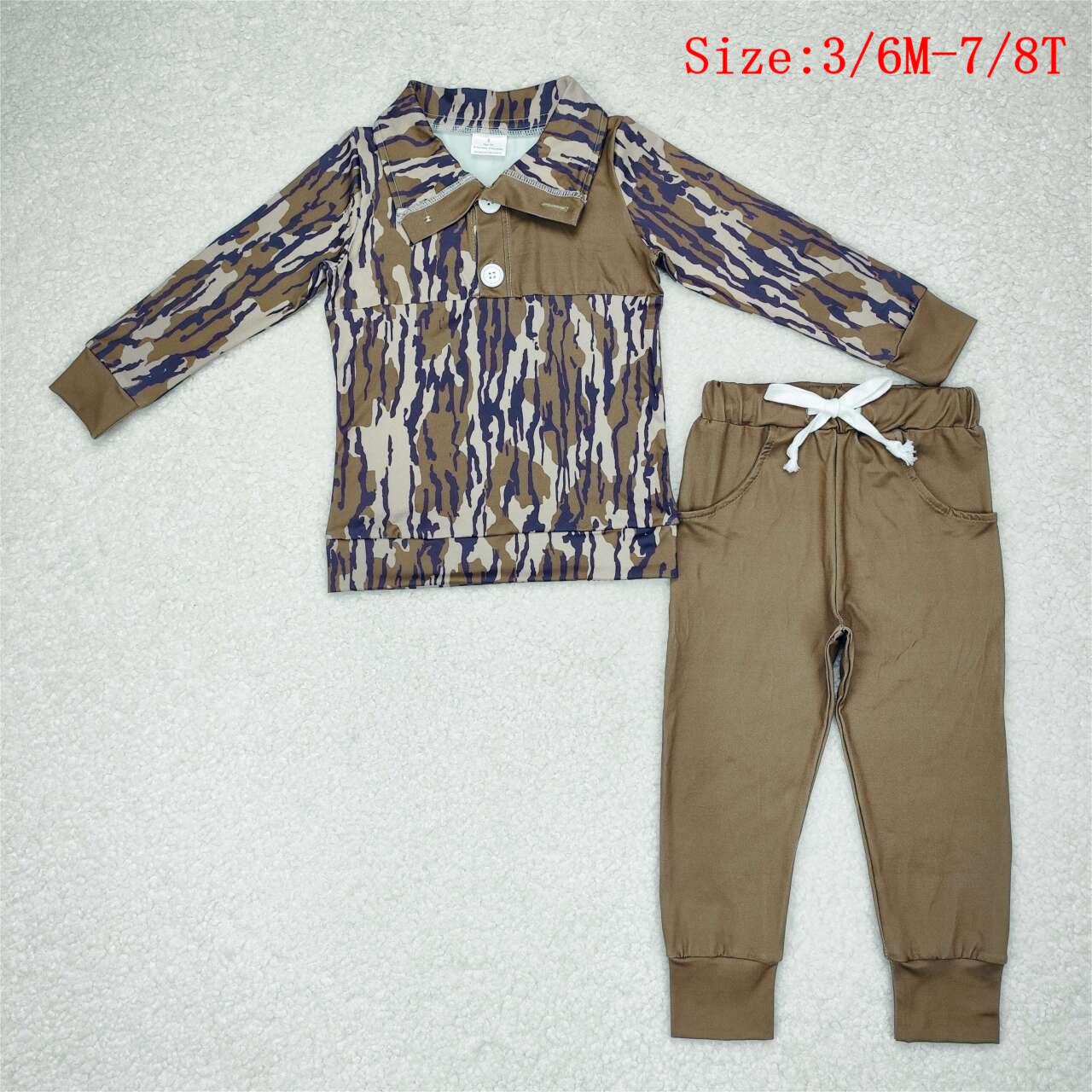 BLP0492 Camo Pullover Top Pockets Pants Boys Fall Clothes Set